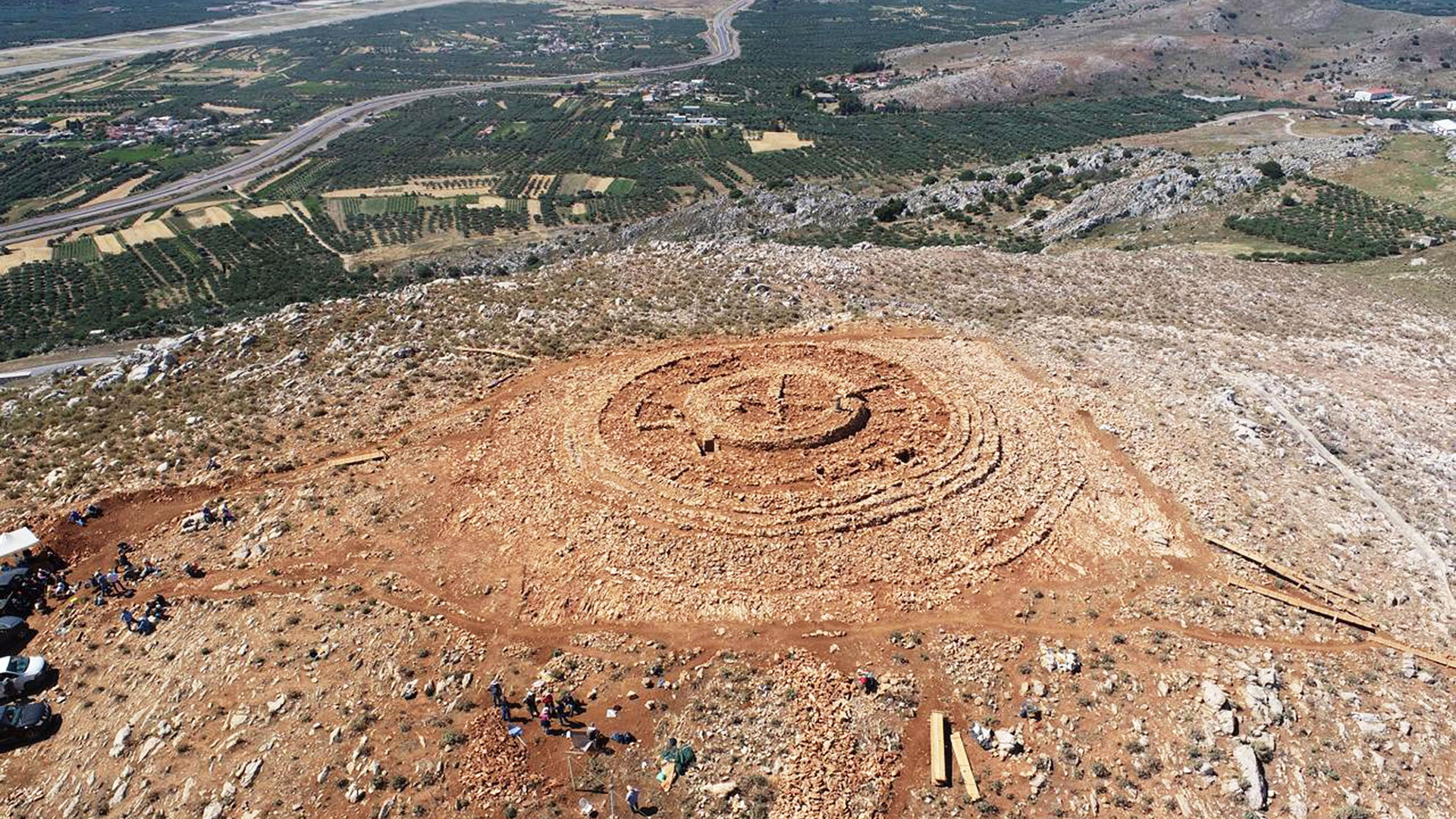 Η ύπαρξη θόλου συμπεραίνεται από το «εκφορικό» σύστημα δόμησης του κεντρικού κτίσματος (κάθε πέτρα τοποθετείται λίγο πιο μέσα από την προηγούμενη, με στόχο τη θολωτή κατασκευή), μέθοδο γνωστή στους Μινωίτες. «Ομως αυτό το κτίσμα περιβάλλεται από κυκλικούς διαδρόμους και σειρές δωματίων», εξηγεί η έφορος, «επομένως είναι σίγουρα διαφορετικό. Στην Κρήτη, και μάλιστα σε κορυφή λόφου, τέτοια κατασκευή δεν έχουμε ξαναδεί».