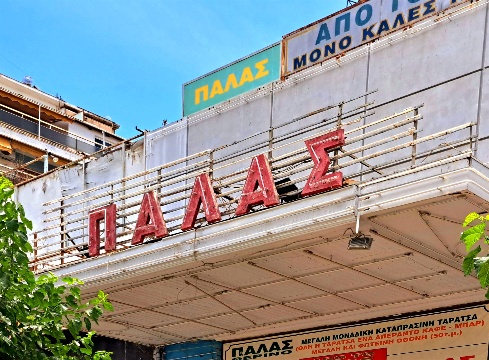 Η είδηση ότι το «Πάλας» στο Παγκράτι περνάει στην ιστορία της Αθήνας, με έφερε στα γύρω στενά. Το ίδιο το σινεμά, πάνω στην Υμηττού, σε μισό τετράγωνο, ανάμεσα στην Ιφικράτους και την Αγίου Φανουρίου (με τον μικρό ναό λίγο παρακάτω) έμοιαζε με ναυαγισμένο καράβι, τσακισμένο στα βράχια. Πόρτες και παράπορτα, γκισέ, μικρές αφίσες, σχημάτιζαν κάτι σαν υλικά που ξέβρασε το κύμα. Από το τζάμι της κεντρικής εισόδου με τα ωραία πόμολα έβλεπα αριστερά τη μεγαλόπρεπη σκάλα με την αρ ντεκό κουπαστή. Ενα ρολόι τοίχου μου θύμισε σταθμό τρένου. Ενας κόσμος σε αφάνεια.