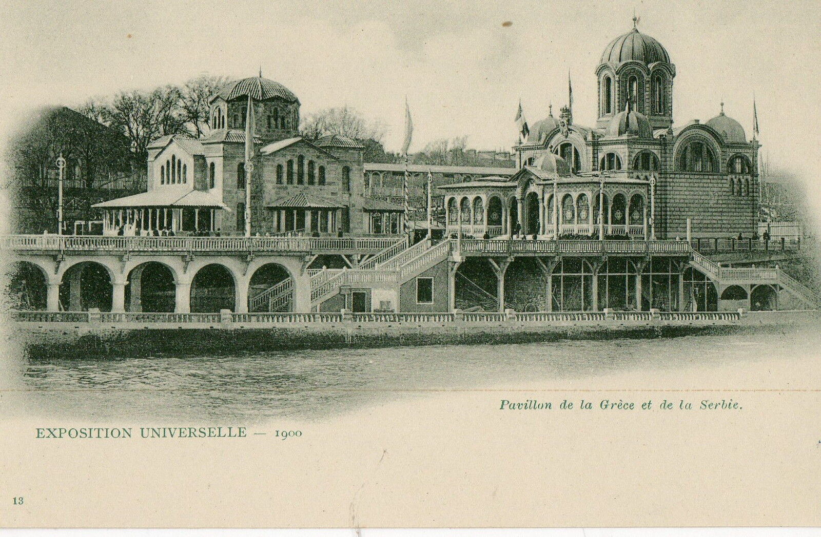 Η Διεθνής Εκθεση του 1900 ήταν μια γιορτή του μέλλοντος. Η παγκόσμια κοινότητα υποδεχόταν τον νέον αιώνα με αισιοδοξία πιστεύοντας ότι η εκπληκτική πρόοδος στις επιστήμες, στην ιατρική, στην τεχνολογία, στην οικοδομική και στη μηχανική, στις επικοινωνίες και στις συγκοινωνίες θα διασφάλιζε την ευημερία. Τα εθνικά περίπτερα έθεταν και ζητήματα γοήτρου. Πλάι πλάι, τα περίπτερα της Ελλάδας και της Σερβίας με την αισθητική γλώσσα που συναιρούσε την ορθόδοξη ναοδομία με την αστική αρ νουβό αποτελούσαν δέλεαρ για φωτογραφικές λήψεις. Το εθνικό περίπτερο της Ελλάδας συναρμολογήθηκε αργότερα στη λεωφόρο Συγγρού. Είναι η εκκλησία του Αγίου Σώστη, που πήρε το όνομά της μετά την ανεπιτυχή απόπειρα δολοφονίας του βασιλιά Γεωργίου Α΄ σε εκείνο το σημείο.