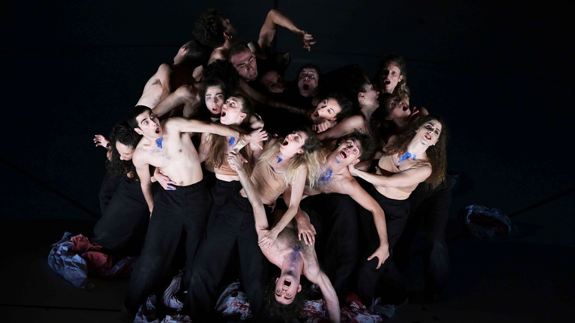 Τα σώματα του Χορού δονούνται σε μια συντεταγμένη χορογραφία της εκδίκησης, του θανάτου, του αίματος, της κάθαρσης, που δεν θα είναι η αναμενόμενη για τον μητροκτόνο Ορέστη. Η Κλυταιμνήστρα, τυλιγμένη με ένα συμπαγές λευκό ύφασμα –σαν από πεπιεσμένο χαρτί και σύρμα–, θυμίζει εικαστική εγκατάσταση· ανευλαβής, κυνική, σαρκάζει. Η κορυφαία στιγμή της αναγνώρισης των δύο αδελφών, Ηλέκτρας και Ορέστη, γίνεται με τους δύο ηθοποιούς να έρπουν ο ένας προς τον άλλον, ανάμεσα στον Χορό, μέσα σε ένα φωτιστικό ορθογώνιο που σχηματίζεται στο δάπεδο (θυμίζει και τάφο). Ο προκλητικός Αίγισθος (Δαυίδ Μαλτέζε) με λευκό κοστούμι και κόκκινη βεντάλια· η Αθηνά (Αγλαΐα Παππά) μοιάζει τυλιγμένη σε ένα κουκούλι, δίνει εντολή «συγκρατήστε τον λαό». Τα λευκά κομμάτια ύφασμα, που είτε σέρνει ο Χορός είτε στοιβάζονται γύρω από την ορχήστρα, έχουν σημάδια από αίμα.