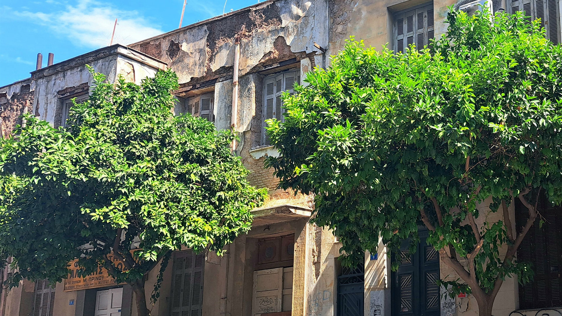 Αλλά και το γωνιακό διώροφο, Ματσούκα και Δημητρακοπούλου, που όπως μας πληροφορεί μια πινακίδα είναι προς πώληση, με τις τρεις εξώθυρες, δύο κεντρικές και μία πλαϊνή, έχει αρχοντιά και διαθέτει τη δική του εκδοχή της αρ ντεκό στις εισόδους σε μια διάταξη σπιτιού που επαναλαμβάνει τη διάρθρωση της τυπικής αθηναϊκής κατοικίας του Μεσοπολέμου. Θα μπορούσε να ήταν ένα σπίτι στου Γκύζη, στο Κουκάκι ή στο Παγκράτι. Είναι ένα σπίτι – επιτομή της αθηναϊκής γειτονιάς. Συνοψίζει αισθήματα, συναιρεί εικόνες.