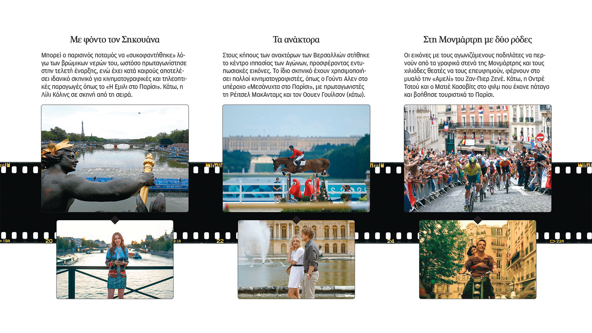 Την περασμένη Δευτέρα, μία ημέρα έπειτα από τον θρίαμβό του στα χωμάτινα κορτ του Ρολάν Γκαρός στους Ολυμπιακούς Αγώνες του Παρισιού, ο Νόβακ Τζόκοβιτς πήρε το χρυσό του μετάλλιο και φωτογραφήθηκε μπροστά στον Πύργο του Αϊφελ. Γύρω του χιλιάδες κόσμου αποθέωσαν τον Σέρβο θρύλο του παγκόσμιου τένις σε μία από τις πιο δυνατές στιγμές των Αγώνων, η οποία θα μπορούσε άνετα να αποτελέσει και τελική σκηνή χολιγουντιανού φιλμ, από αυτές που ο ήρωας θριαμβεύει αφού πρώτα έχει δοκιμαστεί σκληρά. Στη σκιά του Πύργου του Αϊφελ, άλλωστε, αλλά και σε ολόκληρο το Παρίσι, αυτές τις ημέρες κυκλοφορούν πολλοί αστέρες του θεάματος: ο Τομ Κρουζ, ο Στίβεν Σπίλμπεργκ και η Αριάνα Γκράντε παρακολούθησαν από κοντά την τελετή έναρξης. Η Νικόλ Κίντμαν είδε σκέιτμπορντ στη διάσημη Πλας ντε λα Κονκόρντ, ενώ το ζευγάρι των Ράιαν Γκόσλινγκ και Εβα Μέντες θαύμασε τους ιππείς στις Βερσαλλίες. Σταθερά λαμπερούς φαν (Μπαζ Λούρμαν, Ελίζαμπεθ Μπανκς, Λέσλι Μαν) απέκτησε ξαφνικά και το μπιτς βόλεϊ, μια και διεξάγεται ακριβώς στα πόδια του Πύργου του Αϊφελ, κάτι που σημαίνει ότι προσφέρεται για… σέλφι.