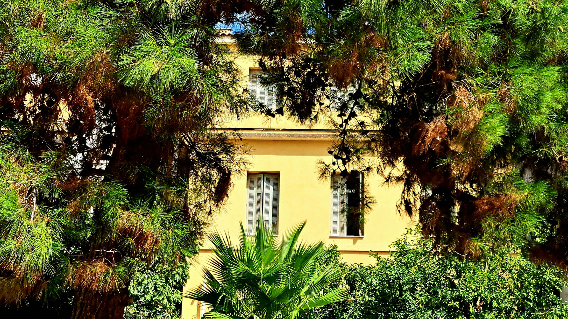 Διστακτικά στην αρχή μπήκα στον περίβολο της Αγίας Θηρεσίας για να νιώσω τον χώρο. Στο βάθος, η μεγάλη αυλή μού έφερνε τη μυρωδιά εκείνων των παλιών οικοπέδων που υπήρχαν κάποτε ανάμεσα στα αθηναϊκά σπίτια και στις μεσοαστικές πολυκατοικίες. Παρκαρισμένα αυτοκίνητα αριστερά και πιο πέρα, οι πίσω όψεις διαμερισμάτων. Οι κρεβατοκάμαρες. Αλλά στο βάθος, στεφανωμένα μέσα σε μια αγκαλιά από πυκνά και μυρωμένα πεύκα, ξεχώριζαν τα παράθυρα μιας ψηλής, παλιάς κατοικίας.