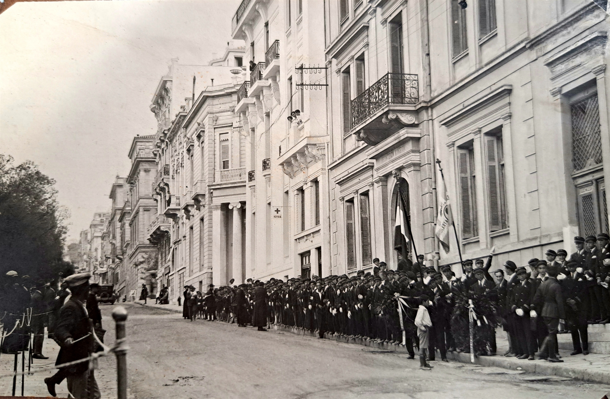 Αλλά αυτή η φωτογραφία με τη μεγάλη αφηγηματική δυνατότητα δεν μας υπενθυμίζει μονάχα την προσφορά της Λεοντείου. Μας δείχνει το κέντρο της Αθήνας. Μας δείχνει το επίπεδο της αστικής ζωής που υπήρχε στους κεντρικούς δρόμους (αλλά και σε πολλές γειτονιές) πριν από τον πόλεμο. Αυτό το περιδέραιο των νεοκλασικών και εκλεκτικιστικών κτιρίων από την Πανεπιστημίου ώς ψηλά στη Σκουφά, αποκαλύπτει την πυκνότητα και τη δύναμη μιας αισθητικής γλώσσας που αντανακλούσε και ένα ορισμένο ήθος διαβίωσης και συμπεριφοράς.