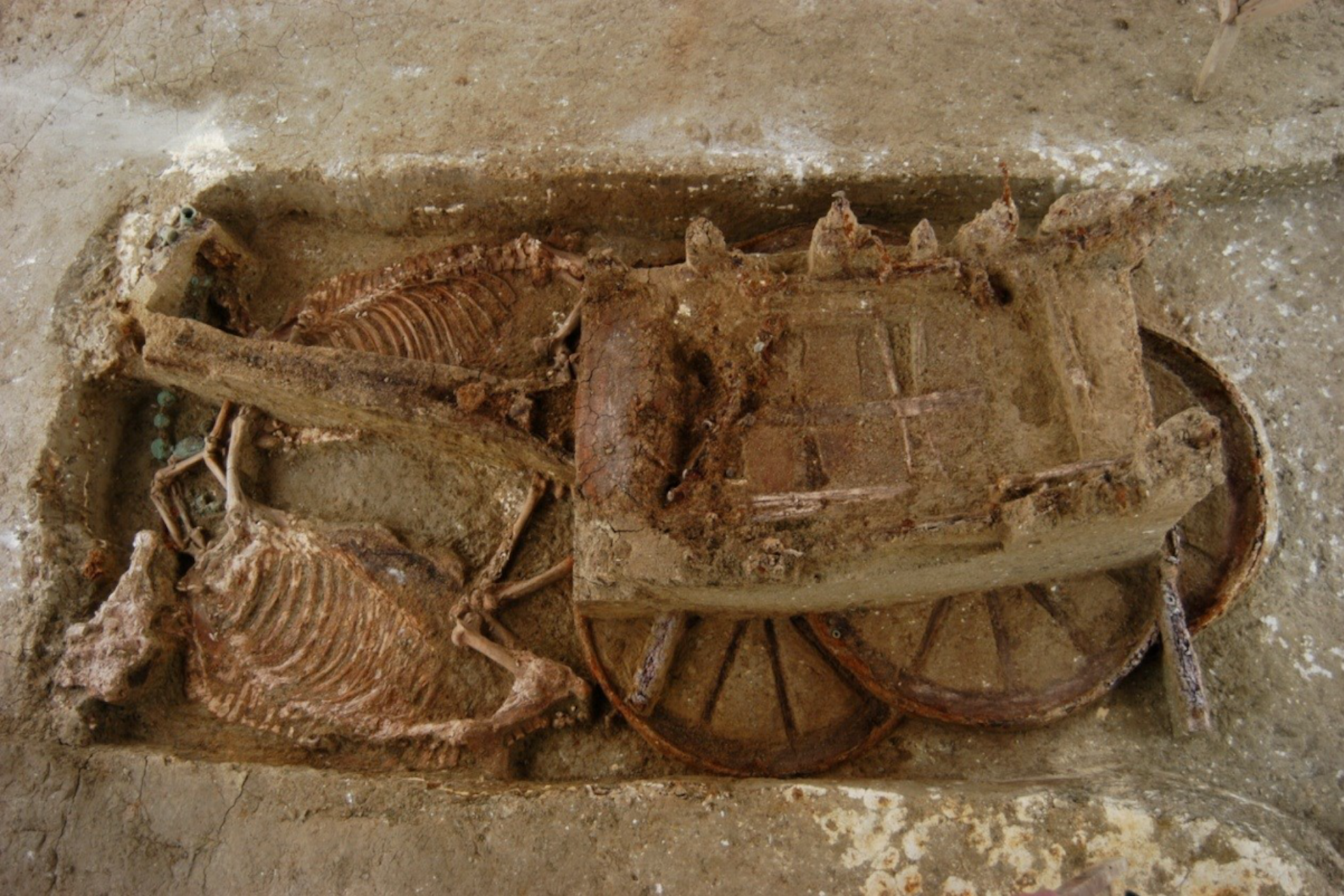 Στην ανασκαφή ερευνήθηκαν τέσσερις λάκκοι με υπολείμματα καύσεων τριών ανδρών και μιας γυναίκας που συνοδεύονταν από πολυάριθμα χάλκινα, σιδερένια, γυάλινα και πήλινα κτερίσματα, πέντε άμαξες με τα υποζύγιά τους καθώς και δύο ταφές πέντε επιπλέον αλόγων. Σε