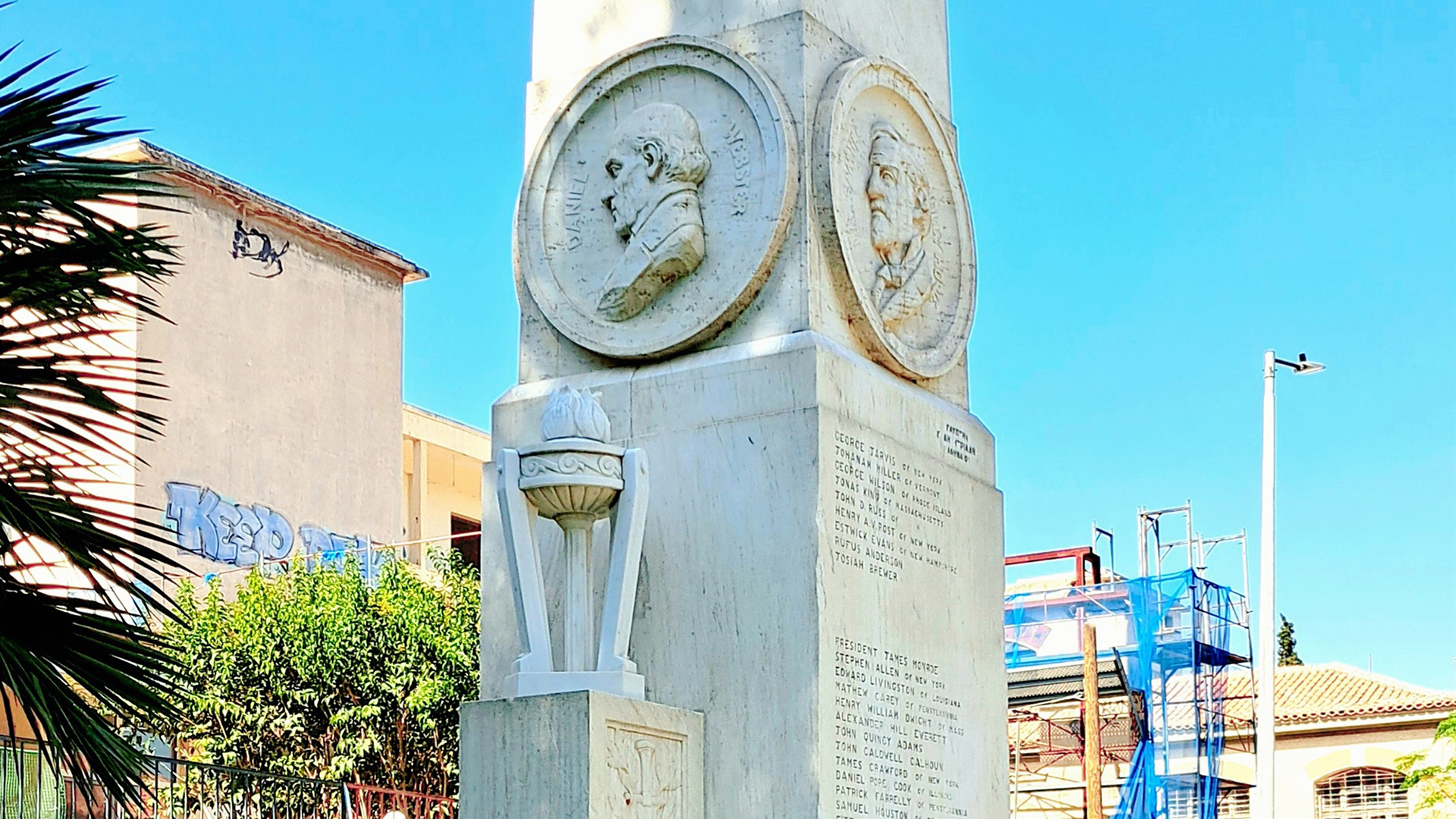 Αυτές οι μορφές βρίσκονται εκεί, στην οδό Παναγή Κυριακού. Στη βάση του μνημείου, που ανεγέρθηκε με πρωτοβουλία του ελληνικού τμήματος της Αμερικανικής Λεγεώνας, διαβάζουμε δεκάδες ακόμη ονόματα. Η έκκληση προς τους Αμερικανούς του Πετρόμπεη Μαυρομιχάλη στη Μεσσηνιακή Σύγκλητο το 1821 υπάρχει σμιλεμένη σε μια άλλη πλευρά της βάσης. Για τα αποκαλυπτήρια του μνημείου το 1930 είχαν συρρεύσει εκατοντάδες επίσημοι και ομογενείς. Ηταν ένα πανηγυρικό επετειακό συμβάν, που έδεσε τον αμερικανικό φιλελληνισμό με το μνημειακό τοπίο της Αθήνας. Σήμερα, η σιωπή που το περιβάλλει το καθιστά ακόμη πιο συγκινητικό.