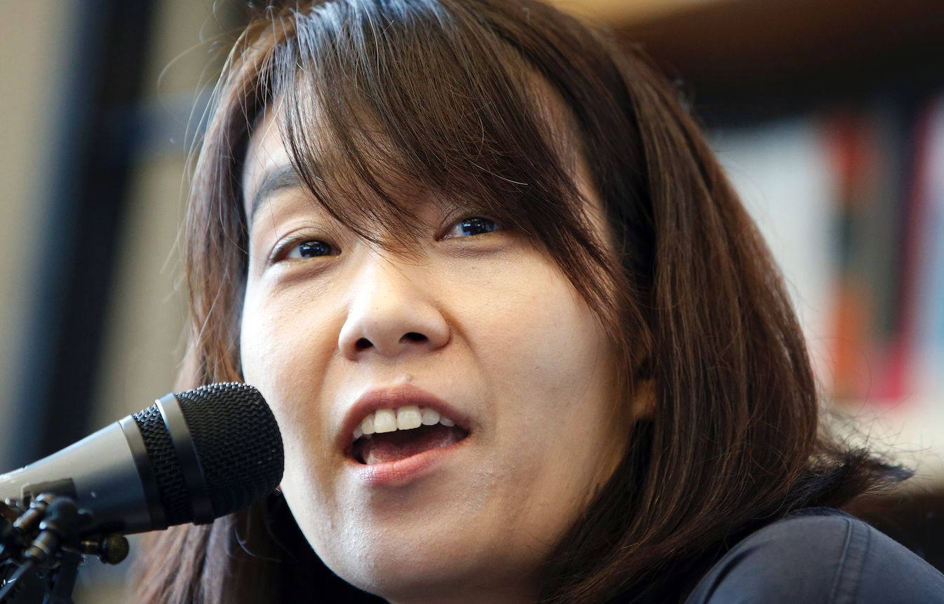 Η Χαν Γκανγκ σε εκδήλωση στη Σεούλ, αμέσως μετά την επιστροφή της από την Αγγλία με το βραβείο Booker, το 2016. © JUNG YEON-JE / AFP/Visualhellas.gr