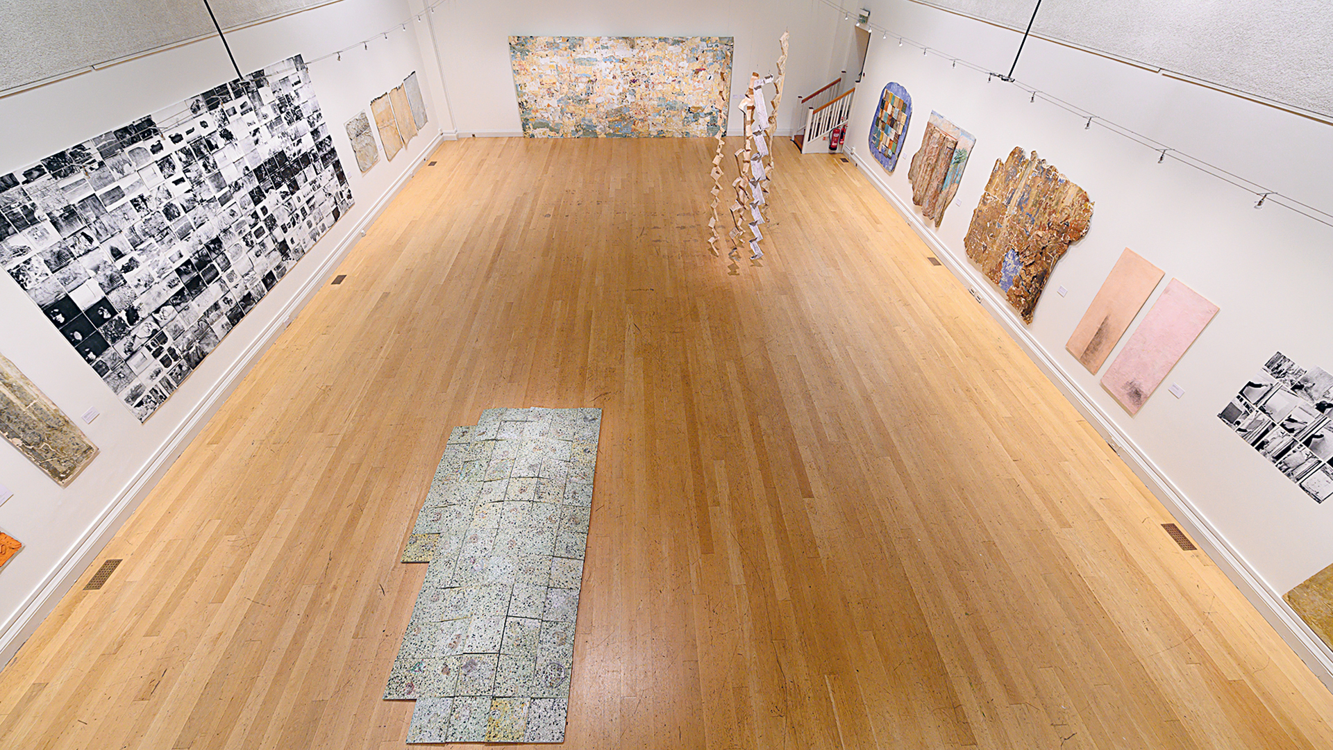 Η προσωπική μου άποψη είναι ότι πριν κατέβει ο επισκέπτης τα σκαλιά που οδηγούν στον υπόγειο χώρο των περιοδικών εκθέσεων του Κέντρου, πρέπει να δει την αίθουσα από ψηλά, από το εσωτερικό «μπαλκόνι» του ισογείου. Τα 22 αντιπροσωπευτικά εργα, στην πλειονότητά τους μεγάλων διαστάσεων, εμπνέονται από την αρχιτεκτονική της γειτονιάς της Παπασπύρου στην Αθήνα. Γέννημα-θρέμμα του Παγκρατίου, χρησιμοποιώντας υλικά όπως τούβλα, πλακάκια, ψηφιδωτά και τμήματα παλιών τοίχων, ενισχύει τις φυσικές ρωγμές, τα βαθουλώματα και τα σημάδια με μολύβι και μπογιά για να δημιουργήσει υποβλητικές εικόνες, γλυπτά και εγκαταστάσεις. Τα έργα μεταφέρουν το βίωμα μιας πόλης ευμετάβλητης, άτακτης, φθαρτής. Το ταξίδι στα συνειρμικά τοπία που αναδύονται ενισχύεται από τις λεπτομέρειες που συγκρατούν οι τοίχοι. Είναι ένα πλούσιο πεδίο προβολής φαντασιακών εικόνων, που φέρει επάνω του αποσπάσματα από μικρές πληροφορίες τις οποίες ο θεατής πρέπει πλέον να δει από κοντά, ιδίως στο μεγάλων διαστάσεων έργο «Αγνωστη όψη» – σκόρπιες λέξεις περαστικών, αριθμοί τηλεφώνων, τυπογραφικά στοιχεία από τα φύλλα των εφημερίδων που χρησιμοποιήθηκαν στη διαδικασία αποκόλλησης, και ημερολογιακές εγγραφές που έγιναν από την εικαστικό. Από κοντά μπορεί επίσης να αισθανθεί πρωτίστως τη μεταμόρφωση που συντελείται μπροστά στα μάτια του όταν οι τσαλακωμένες λαμαρίνες ή οι πλάκες του μωσαϊκού, με την παρέμβαση ενός μαρκαδόρου ή ενός μολυβιού, γίνονται χαρτί ή ύφασμα όπου εγγράφονται εικόνες του υποσυνειδήτου.