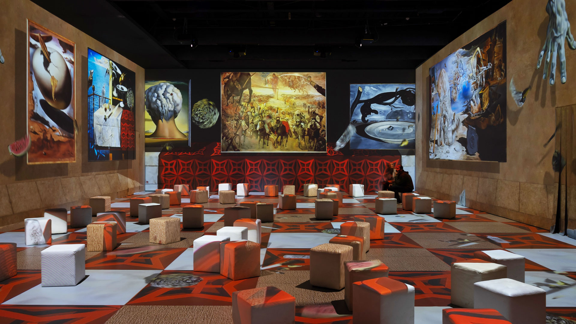Ενας από τους τρεις βασικούς πυλώνες της έκθεσης, που απευθύνεται σε όλες τις ηλικίες, ήταν το δωμάτιο εμβύθισης, μέσα στο οποίο παρακολουθήσαμε τη διαδρομή της σκέψης του Ισπανού ζωγράφου. Οι τρισδιάστατες εικόνες και τα γραφικά, που πλημμυρίζουν τον χώρο, ζωντανεύουν μερικές από τις πιο γνωστές ελαιογραφίες του Νταλί, όπως η «Εμμονή της μνήμης», κάνοντας τα λιωμένα ρολόγια πράγματι να «ρέουν». Στην τριαντάλεπτη αυτή εμπειρία δεν έλειπαν οι επεξηγήσεις πίσω από κάθε στάδιο στην πορεία της καριέρας του, που μας βοήθησαν να κατανοήσουμε περισσότερο τον τρόπο με τον οποίο εντάσσει την κβαντική φυσική, την ανακάλυψη του ατόμου, αλλά και της διπλής έλικας του DNA στους πίνακές του.