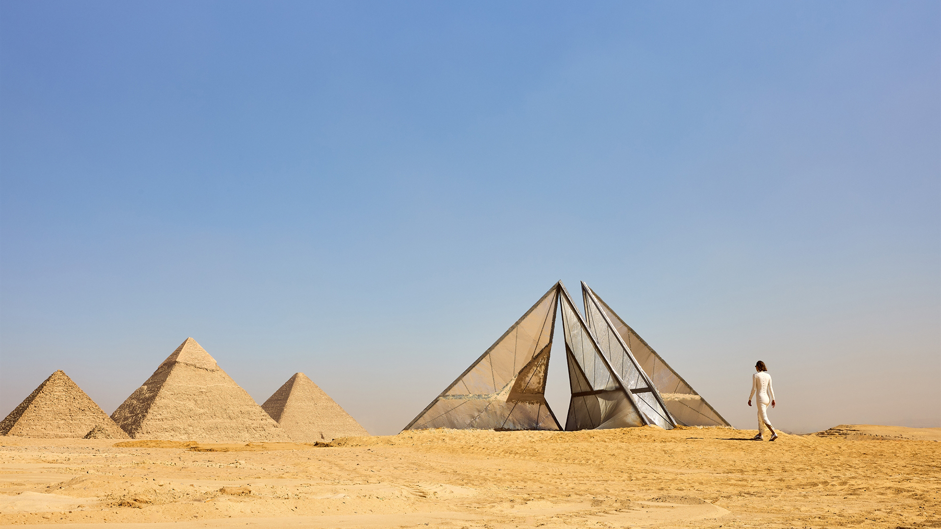 Ο επισκέπτης μπορεί να διαπεράσει το έργο, να σταθεί ανάμεσά του, πατώντας πάνω σε έναν ειδικό διάδρομο που του δίνει την αίσθηση ότι θα εισαχθεί μέσα στις πυραμίδες.