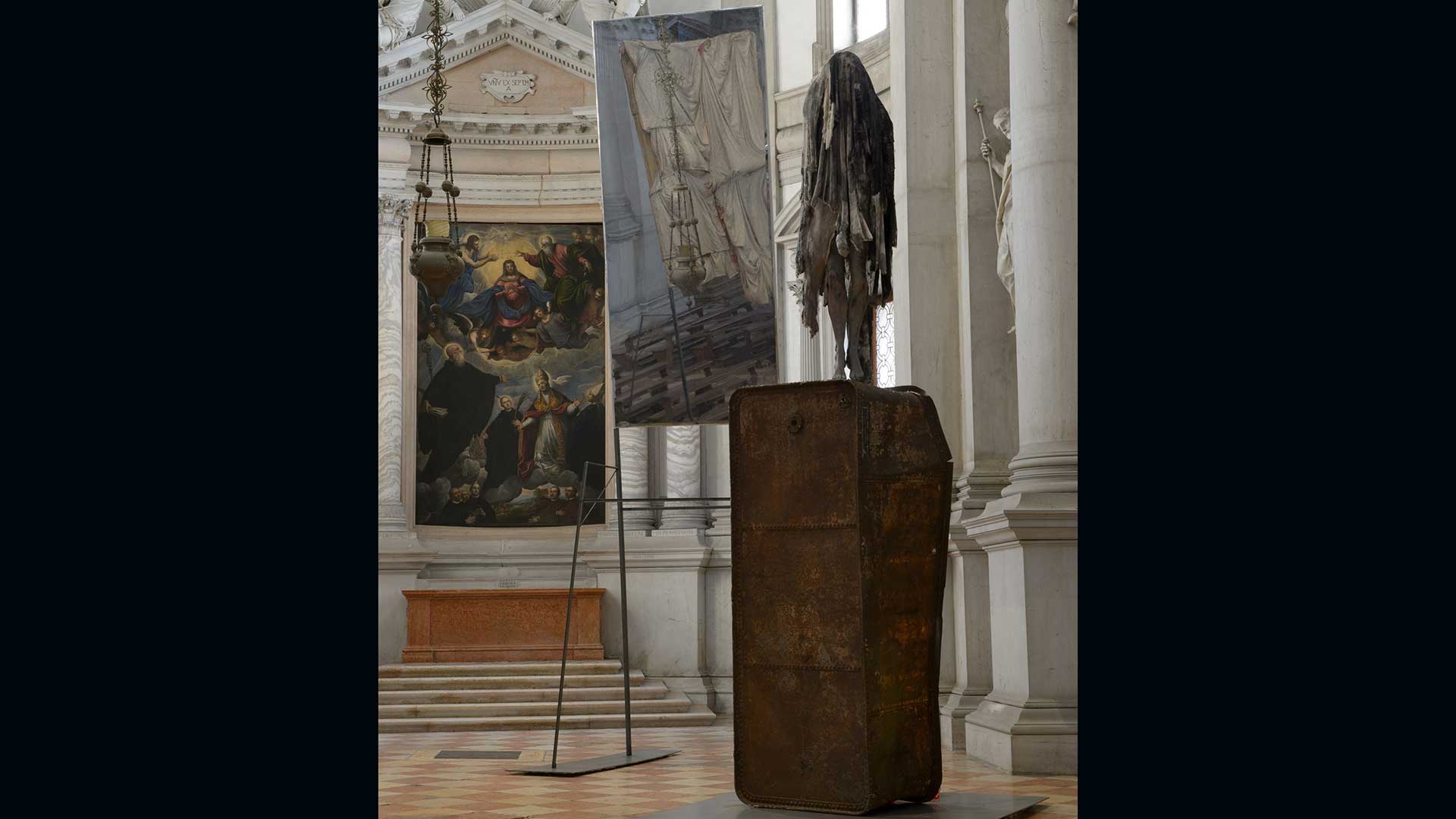 Ολόσωμες μισόγυμνες ανδρικές φιγούρες, με τα μάτια κρυμμένα η το κεφάλι καλυμμένο, με τα χέρια δεμένα, γδύνονται, στέκονται όρθιοι, αδύναμοι και ευάλωτοι. Κομμένες κεφαλές στον βωμό της εκκλησίας θυμίζουν θυσίες, ενώ 207 ανδρικά εσώρουχα σε φυσικό μέγεθος, διασκορπισμένα στο πάτωμα της εκκλησίας, δημιουργούν την ψευδαίσθηση εγκαταλελειμμένων ενδυμάτων. Απογυμνωμένα από το σώμα, τα ταπεινά εσώρουχα αντιπροσωπεύουν το τελευταίο υλικό κομμάτι αξιοπρέπειας και σωματικής αυτονομίας του κρατουμένου και συνδιαλέγονται με τον πίνακα «Η Σταύρωση» του Λεονάρντο Κορόνα, ένα από τα αξιοσημείωτα αριστουργήματα της εκκλησίας, όπου το Τάγμα του Σαν Φαντίν διακονούσε τους καταδικασμένους πριν από την εκτέλεσή τους κατά τη μεταμεσαιωνική εποχή. Σμιλεύοντας τα γλυπτά σε μάρμαρο, ο καλλιτέχνης προσδίδει σεβασμό, αξιοπρέπεια και την αίσθηση υλικής μονιμότητας σε αόρατες ζωές που χάνονται από σύγχρονες πράξεις πολέμου και τρόμου.