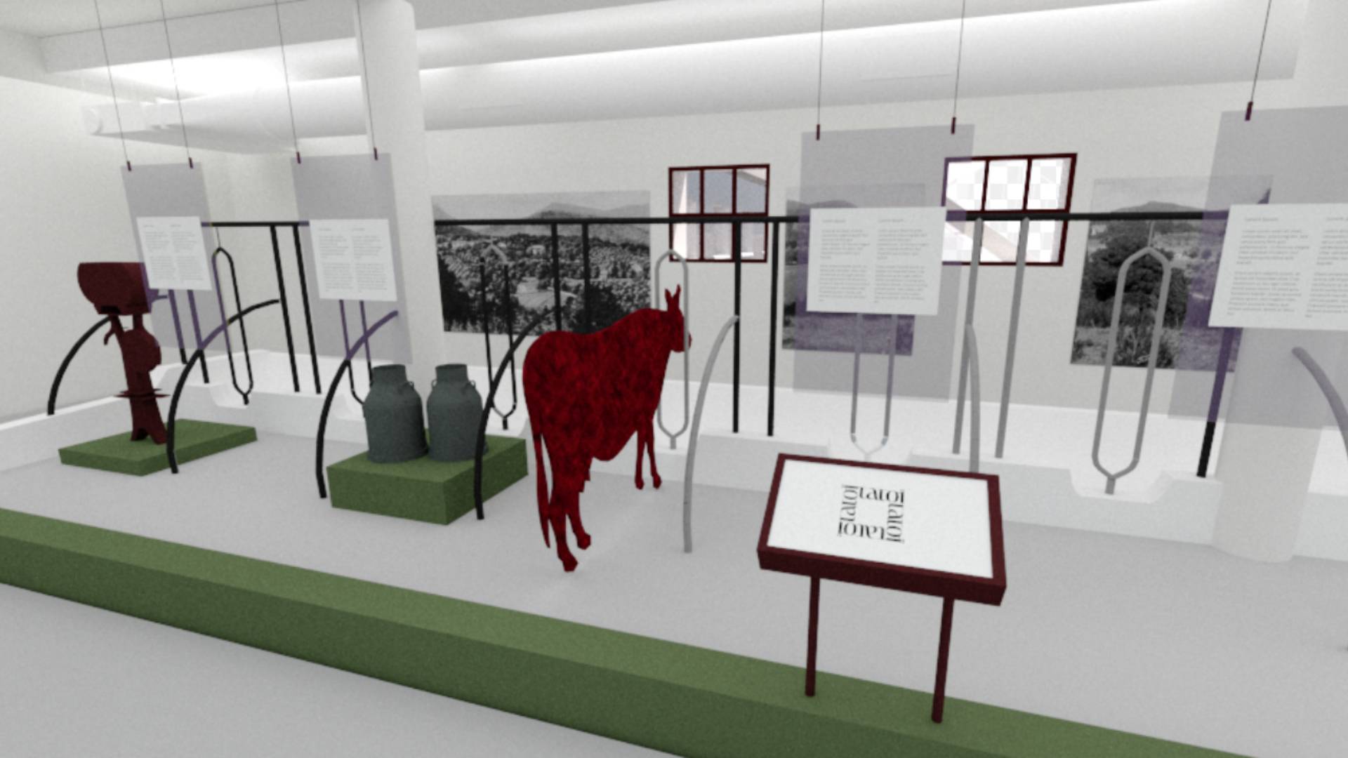 Η Εκθεση της Αγροκτηνοτροφικής Παραγωγής χωροθετείται στη βόρεια και στην ανατολική πτέρυγα του κτίρίου, ενώ η Εκθεση των Βασιλικών Αυτοκινήτων στη δυτική πτέρυγα. Στην αγροκτηνοτροφική εκθεσιακή ενότητα θα εκτεθούν τεκμήρια της αγροτικής και κτηνοτροφικής παραγωγής του κτήματος, με ξεχωριστά τμήματα για την έκθεση παραγωγής γαλακτοκομικών. Επίσης, θα διατηρηθεί και θα αναδειχτεί ο εξοπλισμός που βρέθηκε στο Βουστάσιο και σχετίζεται με την αγροτική παραγωγή λαδιού και κρασιού. Ο εκθεσιακός εξοπλισμός είναι λιτός, με καθαρή γεωμετρία και σαφή αισθητική διαφοροποίηση από το κέλυφος, τυπολογικά ομοιογενής και ομαδοποιημένος, ανάλογα με τη χρήση που καλείται να εξυπηρετήσει, ενώ η διάταξή του στον χώρο είναι ανεξάρτητη από τη γεωμετρία και τα δομικά στοιχεία του. Στην ανεξάρτητη εκθεσιακή ενότητα των βασιλικών αυτοκινήτων, θα εκτεθούν οκτώ αυτοκίνητα: Ενα άσπρο Fiat 500™, δύο αυτοκίνητα μάρκας MG™, τέσσερα αυτοκίνητα κατασκευής Rolls-Royce™ και ένα ηλεκτροκίνητο Victor, από τα συνολικά 10 βασιλικά αυτοκίνητα που έχουν χαρακτηριστεί ως μνημεία. Στην ίδια ενότητα εκτίθενται τα διπλώματα οδήγησης του Παύλου και της Φρειδερίκης και φωτογραφικό υλικό. Στον όροφο, ως ανεξάρτητη ενότητα, χωροθετείται αίθουσα πολλαπλών χρήσεων για εκδηλώσεις και διαδραστικά τμήματα της έκθεσης. Ο άμεσος περιβάλλων χώρος του κτιρίου παίρνει μορφή μικρού περιπάτου και αναψυχής περιμετρικά αυτού.