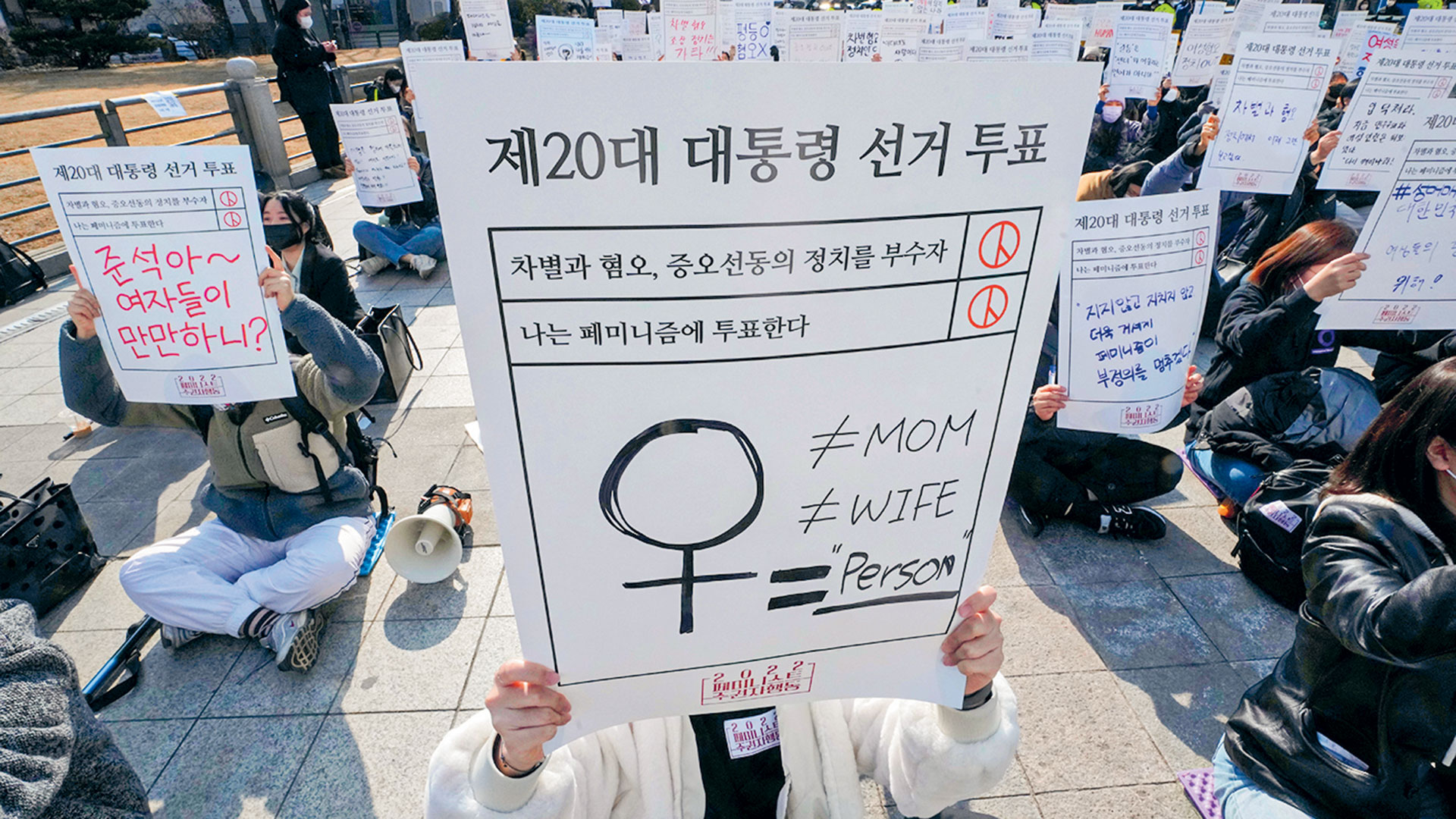 Εξάλλου μιλάμε για μια χώρα του αναπτυγμένου κόσμου όπου, εκτός από τις σοβαρές διακρίσεις κατά των γυναικών, ο πρόεδρος Γιουν Σουκ Γιολ, ο οποίος ανέλαβε καθήκοντα το 2022, κέρδισε τις εκλογές με υποσχέσεις αντιφεμινιστικού χαρακτήρα και βασιζόμενος σε συναισθήματα δυσαρεστημένων από τις διεκδικήσεις των γυναικών, ανδρών ψηφοφόρων. Μεταξύ των υποσχέσεων ήταν και η κατάργηση του Υπουργείου Ισότητας των δύο Φύλων.