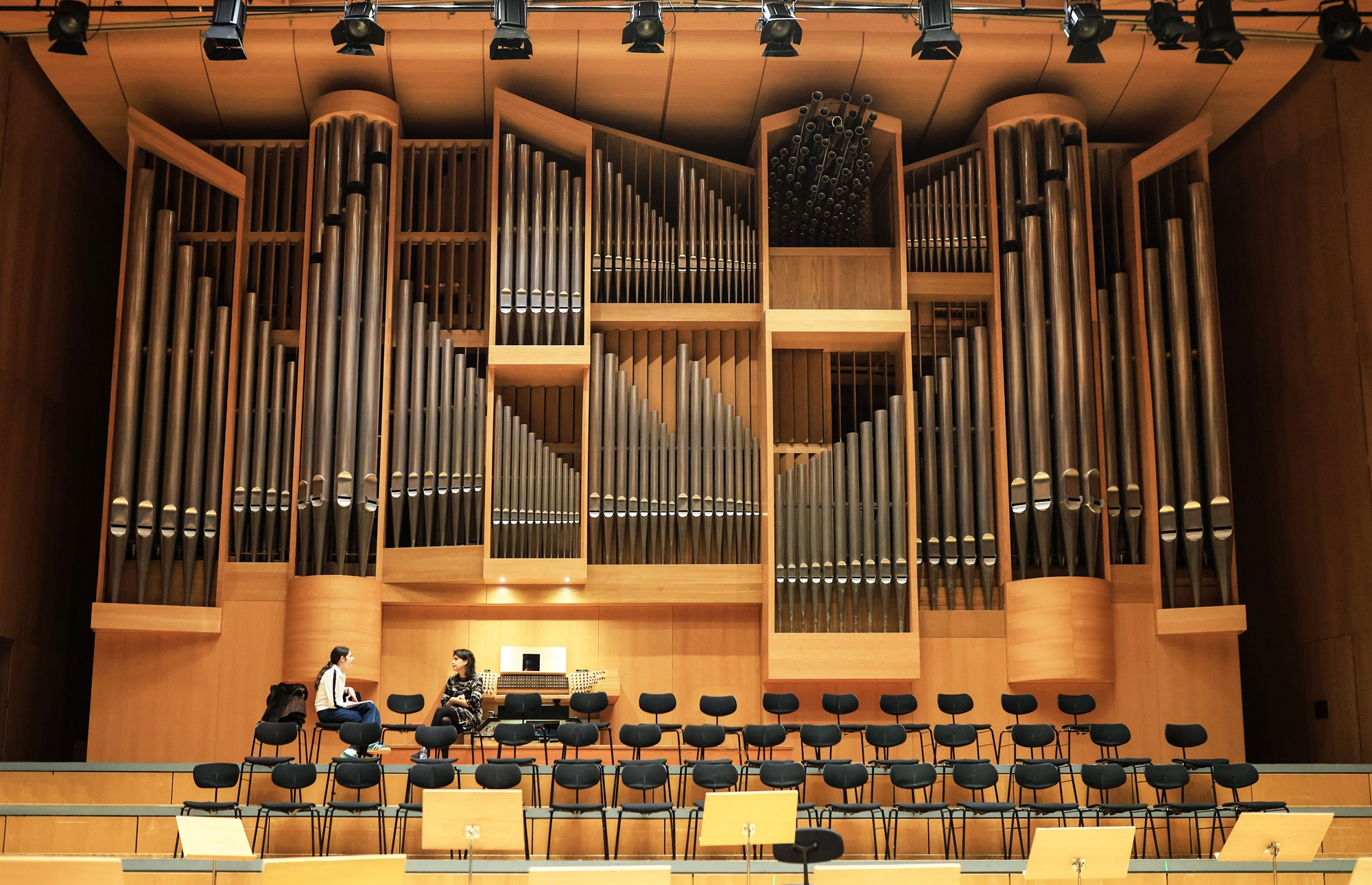 Οταν μπήκαμε στην αίθουσα του Μεγάρου Μουσικής Αθηνών, «Χρήστος Λαμπράκης», ο χώρος ήταν σκοτεινός και μόνο ένα μικρό φως διέγραφε τα τέσσερα κλαβιέ του εκκλησιαστικού οργάνου και τη φιγούρα της οργανίστριας Ουρανίας Γκάσιου, που έκανε πρόβα για το καθιερωμένο ρεσιτάλ της στις 23 Δεκεμβρίου. Μόλις άναψαν τα φώτα, αποκαλύφθηκαν και οι τεράστιοι μεταλλικοί αυλοί μέσα από τους οποίους έβγαιναν οι μελωδίες από την «Πασσακάλια και Φούγκα» του Μπαχ.