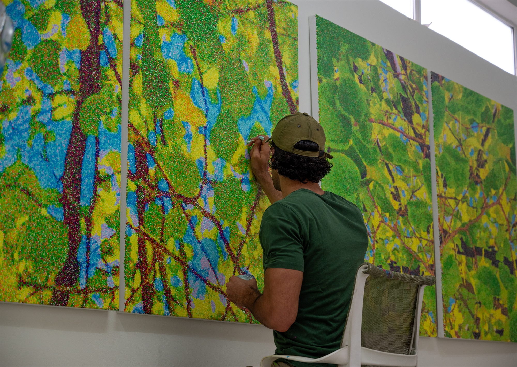 Η πρώτη ατομική έκθεση του Γιώργου Πέφανη με τίτλο «Windows Within» (φωτογραφία), στην Della Rounick Gallery, εξερευνά τη ζωντανή αλληλεπίδραση της φύσης και του εαυτού. Τα 23 ακρυλικά έργα σε καμβά, που κυμαίνονται σε πολλά μεγέθη, αναδεικνύουν τη διεξοδική τεχνική του καλλιτέχνη, η οποία περιλαμβάνει εκατοντάδες χιλιάδες κουκκίδες. Στις 10 π.μ. – 8 μ.μ., Λεβέντη 1.