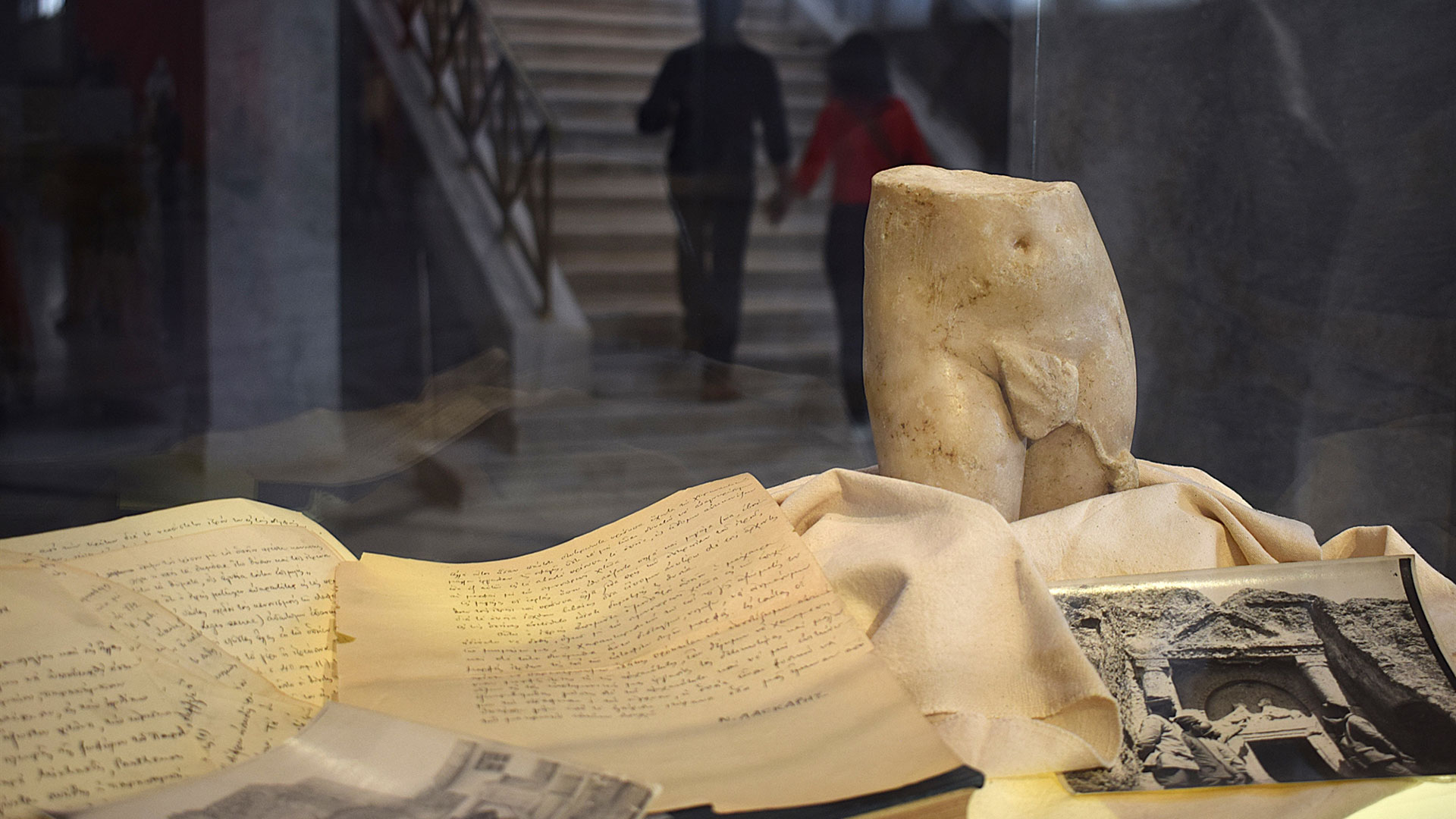 «Λάσκαρης, Κουρουνιώτης, Παρασκευαΐδης και Σωτηρίου παίρνουν μαζί τους από ένα αρχαίο αντικείμενο. Αυτό δεν ιστορείται πουθενά, αλλά το φθινόπωρο του 1922 παραδόθηκαν στην Αθήνα τέσσερα αντικείμενα από αυτούς τους τέσσερις», μας λέει ο κ. Πασχαλίδης και μας εξηγεί ότι η επιλογή του κάθε αντικειμένου φαίνεται να συμβολίζει κάτι. «Ο Κουρουνιώτης επέλεξε ένα μαρμάρινο προσφυγάκι, που παρουσιάστηκε σε προηγούμενο “Αθέατο μουσείο” και βρίσκεται στη μόνιμη συλλογή της έκθεσης του μουσείου. Εχει ενδιαφέρον αν σκεφτούμε ότι αυτός και η σύζυγός του δεν είχαν αποκτήσει ποτέ παιδιά. Ο Παρασκευαΐδης επέλεξε έναν χάλκινο Ηρακλή και είναι εντυπωσιακό αν παρατηρήσουμε πως και εκείνος και το αγαλμάτιο είναι δύο φιγούρες που μοιάζουν στον τρόπο που ποζάρουν. Εχουν ένα “μάγκικο” στυλ. Ο Σωτηρίου, άνθρωπος βαθιά θρησκευόμενος, βυζαντινός αρχαιολόγος, πήρε τη σπανιότατη λίθινη πλάκα του 4ου αιώνα με τα μετάλλια των αγίων, η οποία βρίσκεται στο Βυζαντινό Μουσείο».