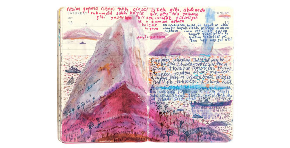 Η δεύτερη αυτή κλίση του νομπελίστα συγγραφέα έχει ίσως διαφανεί στο μυθιστόρημά του «Με λένε κόκκινο» (εκδ. Πατάκη), αλλά και έχει αποτυπωθεί πιο χειροπιαστά στο διήγημά του «Κοιτάζοντας από το παράθυρο», που συνοδεύεται από ασπρόμαυρα σκίτσα του. Τι απέγιναν όμως τα υπόλοιπα «κρυφά» σχέδιά του; Ειδικά από το 2009 έως το 2022, ο Παμούκ σχεδίαζε καθημερινά σε σημειωματάρια, στα οποία κατέγραφε, εν είδει ημερολογίου, μικρότερες ή μεγαλύτερες στιγμές της ζωής του. Και είναι αυτή η χρονική περίοδος –όταν ο Παμούκ έγραψε μυθιστορήματα όπως το «Μουσείο της αθωότητας», δίδαξε στο Πανεπιστήμιο Κολούμπια, αλλά και καταδικάστηκε για προσβολή της χώρας του– που παρουσιάζεται στο λεύκωμα «Memories of Distant Mountains» (εκδ. Knopf), το οποίο μεταφράστηκε πρόσφατα στα αγγλικά.