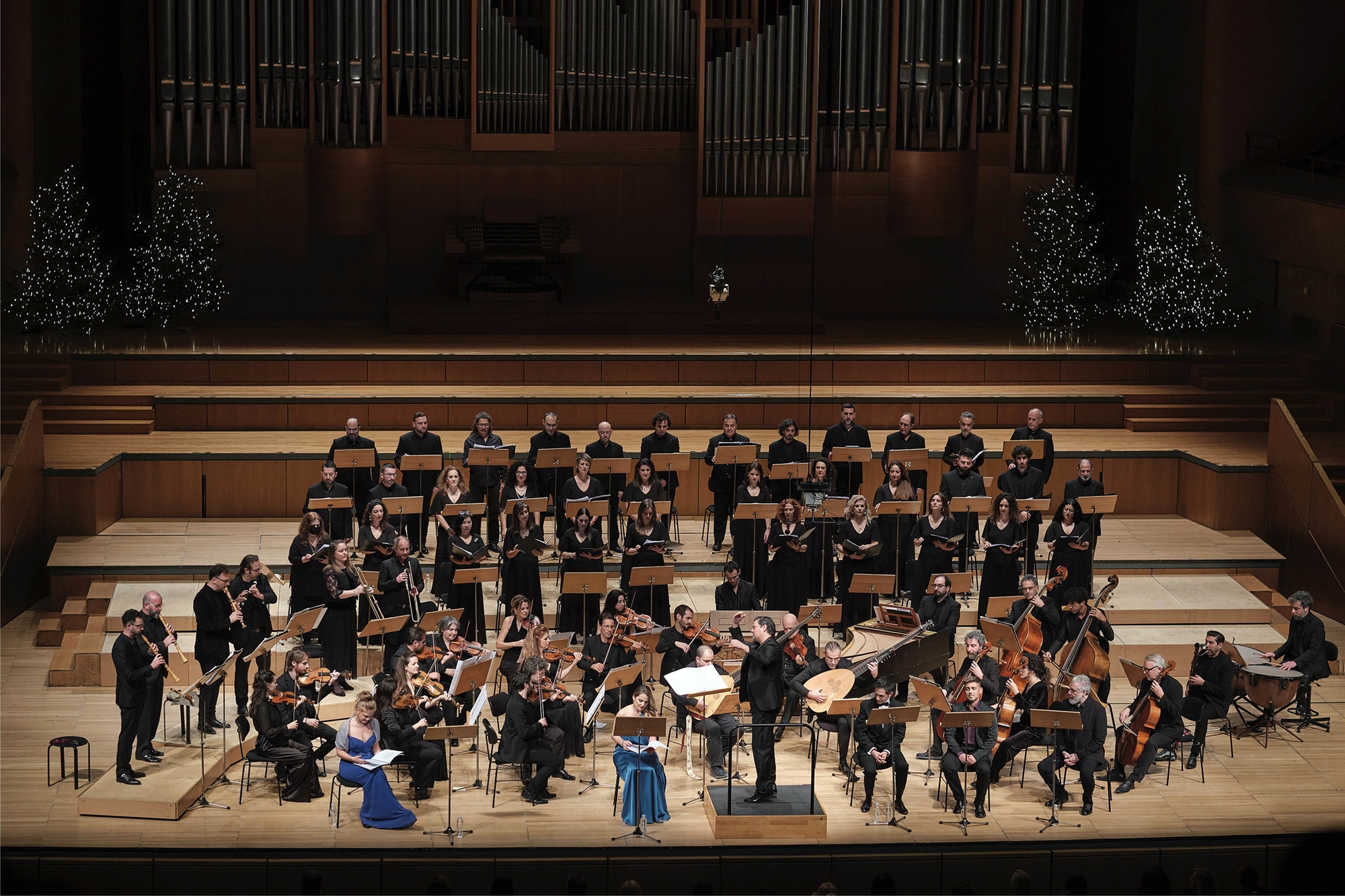 Η Καμεράτα, η οποία μόλις πρόσφατα (30.11.24) επανεμφανίστηκε ως ορχήστρα του Μεγάρου Μουσικής Αθηνών, έδωσε ένα εξαιρετικό δείγμα γραφής. Υπό την καθοδήγηση του Γιώργου Πέτρου, ο οποίος διαθέτει μεγάλη εμπειρία στην μπαρόκ μουσική, τα δύο μοτέτα ήχησαν κατ’ αρχάς λαμπερά και γιορτινά, όπως ακριβώς είναι ο στόχος τους. Και στα δύο έργα τα διαφορετικά εδάφια αρθρώθηκαν με επιτυχία ώστε αφενός να διασφαλίζεται συνεχής ροή της μουσικής και αφετέρου καθένα να αποκτά τη σαφώς διακριτή διάθεσή του. Ετσι, πλάι στα λαμπερά μέρη, χαρακτηριστικά υπαινικτικό υπήρξε το ένατο μέρος («Αξιος Κύριε…») στο έργο του Λουλί, όπως επίσης το όγδοο («Αιτούμεν Σε») και το δέκατο («Αγιος ει, Κύριε») σε εκείνο του Σαρπαντιέ. Στα δύο τελευταία, αποφασιστικά συνέβαλαν η καθαρή φωνή της υψιφώνου Μυρσίνης Μαργαρίτη και το εκφραστικό τραγούδι του βαρυτόνου Τάση Χριστογιαννόπουλου. Από τους μονωδούς ξεχώρισε ακόμη η καθαρή, ακριβής και άνετη φωνή του τενόρου Χουάν Σάντσο, ενώ το κουιντέτο των σολίστ συμπλήρωναν η υψίφωνος Φραντσέσκα Λομπάρντι Ματσούλι και ο τενόρος Γιάννης Φίλιας. Συντονισμένη και αποτελεσματική υπήρξε η Χορωδία της ΕΡΤ (μουσική προετοιμασία: Μιχάλης Παπαπέτρου).