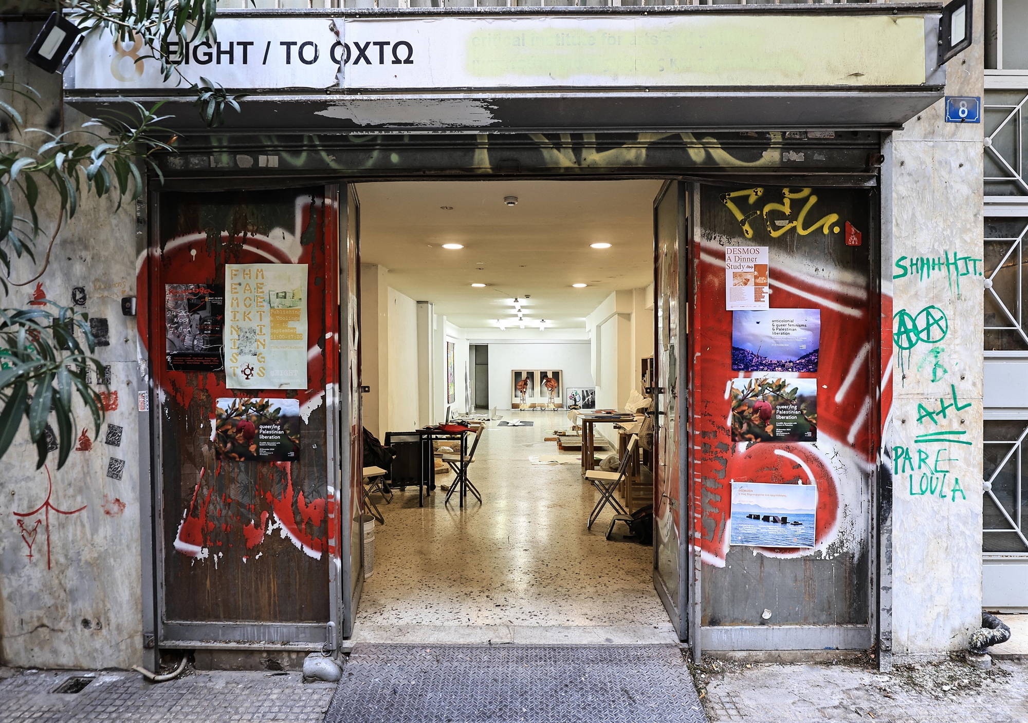 Ο χώρος άνοιξε το 2019 με δική τους πρωτοβουλία και της επιμελήτριας Γκίγκης Αργυροπούλου. Δεν πρόκειται για μια παραδοσιακού τύπου γκαλερί, που φιλοξενεί μόνο εικαστικές εκθέσεις, αλλά για έναν υβριδικό χώρο, ο οποίος αγκαλιάζει κάθε είδος τέχνης, όπως το θέατρο και ο κινηματογράφος. «Οτιδήποτε συμβαίνει στο “Οχτώ” θέλουμε να αντανακλά τους σημερινούς αστικούς και κοινωνικούς μετασχηματισμούς που συμβαίνουν γύρω μας. Για παράδειγμα, η τελευταία μας έκθεση είχε τον τίτλο “Θεσμίζειν” και περιελάμβανε φωτογραφικό υλικό και βίντεο, αποτυπώνοντας εφήμερα ακτιβιστικά εγχειρήματα και καταλήψεις που έγιναν στο παρελθόν, στο κέντρο, ως αντίδραση σε φλέγοντα κοινωνικά ζητήματα», μας εξηγεί ο κ. Νούλας.