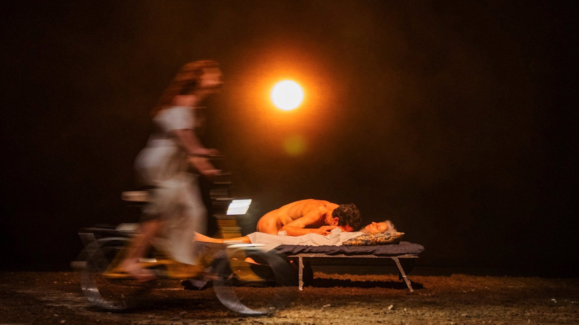 Το συγκλονιστικό αφήγημα της μητρικής αγάπης απαιτεί τον συγκινησιακό κώδικα της ενσυναίσθησης, του λυγμού, του κόμπου της φωνής, της απελπισίας και του φόβου που προκαλεί σε όλους μας η στέρηση της παρουσίας της μαμάς, αυτής της απώλειας του υπαρξιακού κέντρου βάρους που εξασφαλίζει την εσωτερική ισορροπία. Αυτό το κενό στη δραματική αφήγηση δεν καλύπτεται ούτε από τα ευλύγιστα γυμνά σώματα που κινούνται ανάποδα, τα εντυπωσιακά ανδρικά σωματικά γλυπτά, ούτε από τα ενυδρεία, την περιστροφική κίνηση του (ηλεκτρικού;) ποδηλάτου γύρω από το χωμάτινο σκηνικό ή τα διαδοχικά σκηνικά ταμπλό.