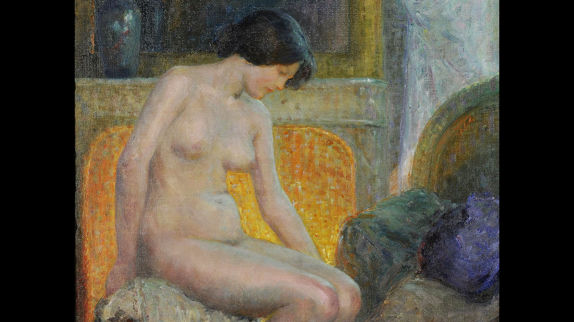 Μέσα λοιπόν σε αυτό το έμφυλο πλαίσιο, πώς συλλαμβάνει το «ανδρικό βλέμμα» το γυναικείο σώμα στην «Ανδρομέδα δεμένη στους βράχους» του Νικολάου Κουνελάκη, το πρώτο έργο της θεματικής περιήγησης; «Κατά τον 19ο αιώνα χρειαζόταν μια ιδεολογική κατασκευή γύρω από το γυναικείο γυμνό, και σε αυτόν τον πίνακα δίνεται μέσω της ελληνικής μυθολογίας. Ετσι ο άντρας παραγγελιοδόχος του έργου και ο άντρας ζωγράφος “δικαιολογούν” την αισθητική απόλαυση μιας σχεδόν ηδονοβλεπτικής ματιάς μέσω ενός θέματος κοινής αποδοχής», σημειώνει η κ. Μπότσου.