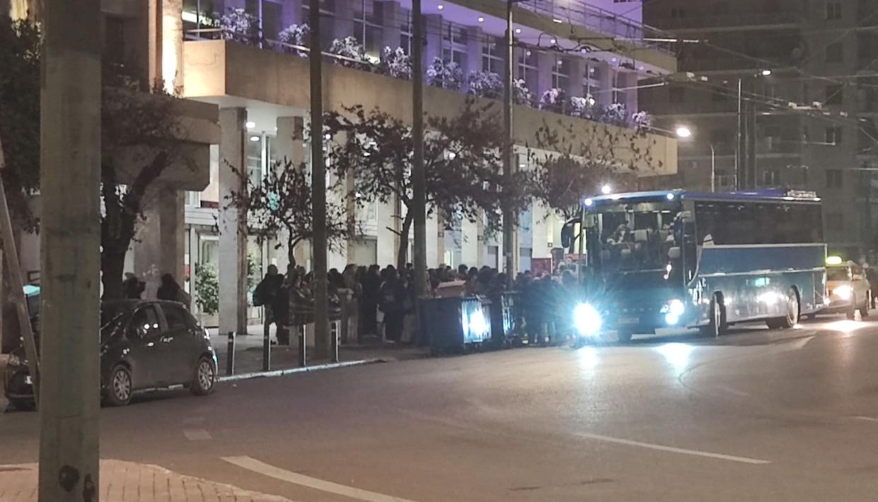 Είναι οι πρώτες πρωινές ώρες της Δευτέρας. Δύο πούλμαν βρίσκονται σταθμευμένα στην πλατεία Καραϊσκάκη και περιμένουν κόσμο για να επιβιβαστεί και να αναχωρήσουν. Σε λίγα δευτερόλεπτα, το πεζοδρόμιο γεμίζει με άνδρες και γυναίκες διαφορετικών ηλικιών που κατευθύνονται προς τα οχήματα.