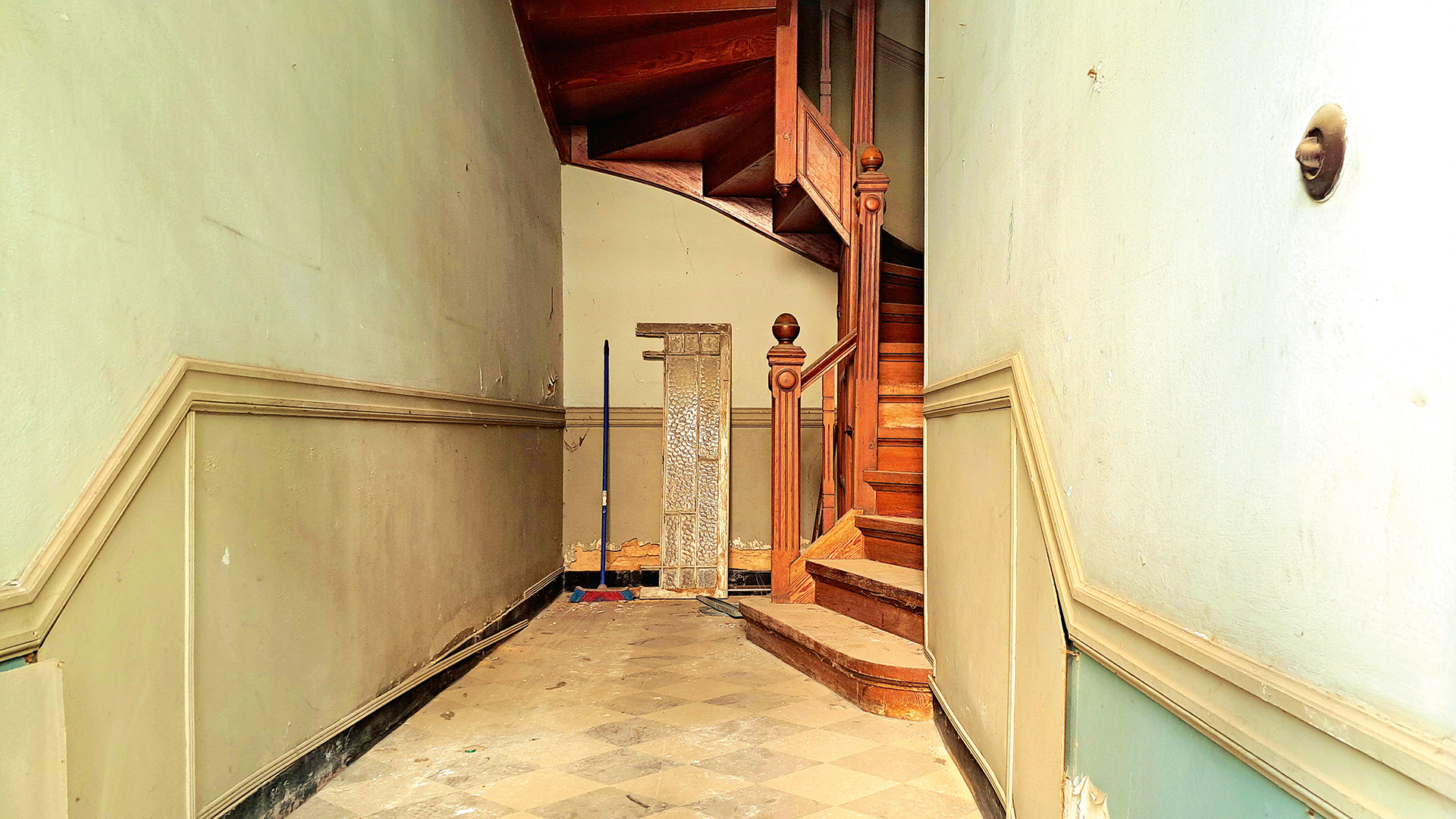 Στην οδό Σύρου 22, πάνω από την Επτανήσου, στην Κυψέλη, διασώζεται μια παλιά διπλοκατοικία. Εχει δύο λευκές, ξύλινες, νεοκλασικές εξώθυρες. Η μία οδηγεί στο διαμέρισμα του ισογείου και η άλλη ανοίγει σε έναν προθάλαμο στο βάθος του οποίου ξεκινάει το κλιμακοστάσιο για το διαμέρισμα του ορόφου. Αν σκύψει κανείς μέσα από το τζαμωτό της εξώθυρας, θα δει αυτήν ακριβώς τη θέα στο εσωτερικό του σπιτιού. Και μόνο η στάση και το φιλοπερίεργο βλέμμα του διαβάτη αρκεί για να προϊδεάσει το επόμενη στάδιο, αυτό της ελαφράς επίκυψης ώστε το εσωτερικό του σπιτιού να εμφανιστεί στο άνοιγμα του φεγγίτη σαν μέσα από μια camera obscura.