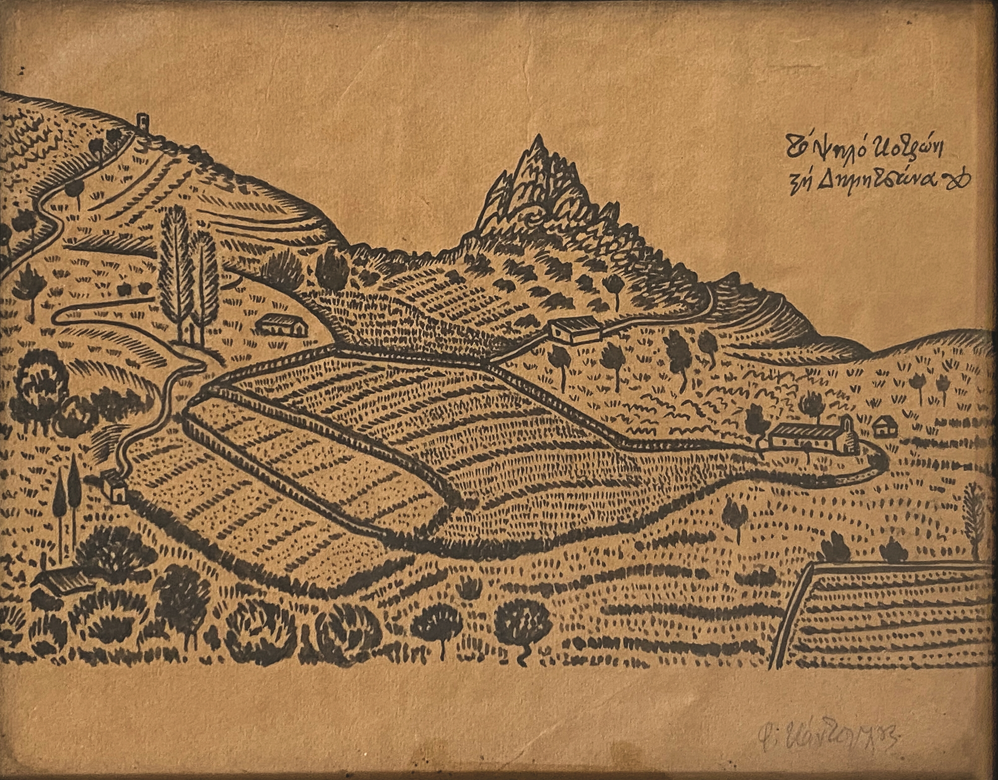 Ενα από τα άγνωστα σχέδια με τα οποία εμπλουτίζεται ο τόμος ανήκει στην κατηγορία των τοπιογραφιών του Κόντογλου και έχει τίτλο «Το ψηλό κοτρώνι στη Δημητσάνα». Ορεινοί όγκοι, κορυφές, περιφράξεις, κτίσματα με στέγη, ένα κτίριο με κωδωνοστάσιο, ίσως κάποιο ξωκλήσι, δέντρα και φυτά διακρίνονται στο σχέδιο. Σύμφωνα με την ανάλυση του δρος Χριστιανικής και Βυζαντινής Αρχαιολογίας Μιχάλη Ασφενταγάκη, το σχέδιο χρησιμοποιήθηκε για να διακοσμήσει σελίδες από το βιβλίο του «Ταξείδια» (1928), αλλά το πιο σημαντικό είναι ότι έγινε το πρότυπο για τον πίνακα «Βυζαντινό τοπίο» (1938) που σήμερα φυλάσσεται στο Μουσείο Νεοελληνικής Τέχνης της Ρόδου.