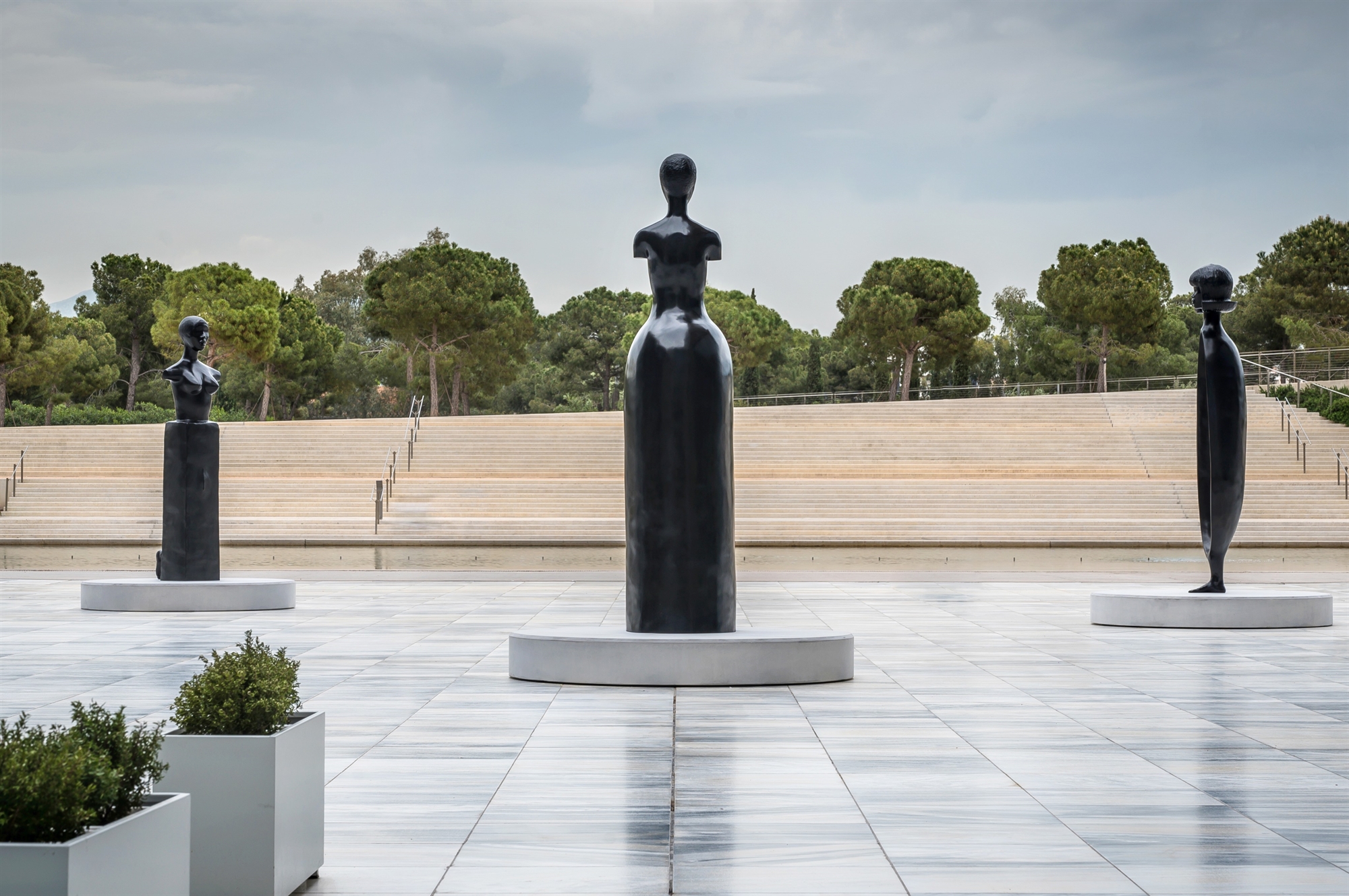 Τι και ποιες αξίζει να στέκονται στα βάθρα; Ποια σώματα θέλουμε να μνημονεύουμε δημόσια κατά τον 21ο αιώνα που διανύουμε και σε ποια από αυτά θα θέλαμε νοερά να κατοικούμε; Με τρία γλυπτά που αναπαριστούν ψηλόλιγνες γυναικείες μορφές, μαύρες σαν έβενος αλλά κατασκευασμένες από μπρούντζο με επιστρώσεις που καθιστούν τις επιφάνειες στιλπνές σαν ανθρώπινο δέρμα, απαντά στις παραπάνω ερωτήσεις η Αφροαμερικανίδα γλύπτρια Σιμόν Λι. Είναι η Βέσελ (Vessel), η Μπίσι (Bisi) και η Χερμ (Herm), τοποθετημένες στις τρεις γωνίες ενός νοητού σκαληνού τριγώνου μέσα στην Αγορά του Κέντρου Πολιτισμού Ιδρυμα Σταύρος Νιάρχος. Τρεις ανθρωπόμορφες αλλά όχι παραστατικές φιγούρες με ρίζες στην Αφρική, οι οποίες «συνομιλούν» δυναμικά μεταξύ τους και ταυτόχρονα απευθύνονται στον δήμο, δηλαδή στο κοινό, σε ένα χώρο όπου στο παρελθόν δεν θα είχαν το δικαίωμα να πάρουν τον λόγο.