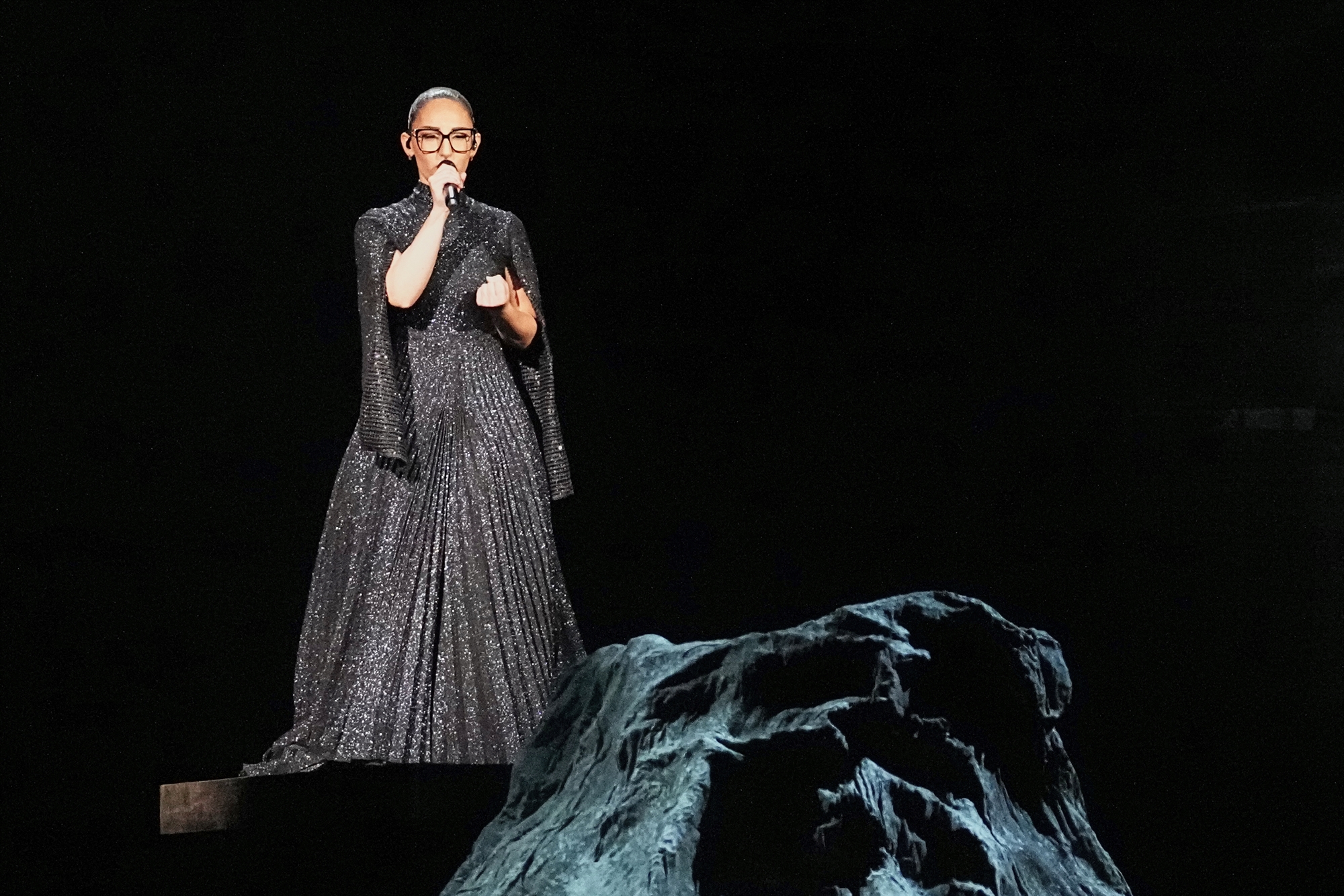 Σταθερή φωνητικά καθ’ όλη τη διάρκεια του τραγουδιού, έκανε την είσοδό της πάνω σε μια αποβάθρα, ντυμένη με δημιουργία των Deux Hommes, καταλήγοντας σε ένα βράχο που είχε στηθεί στο κέντρο της σκηνής.