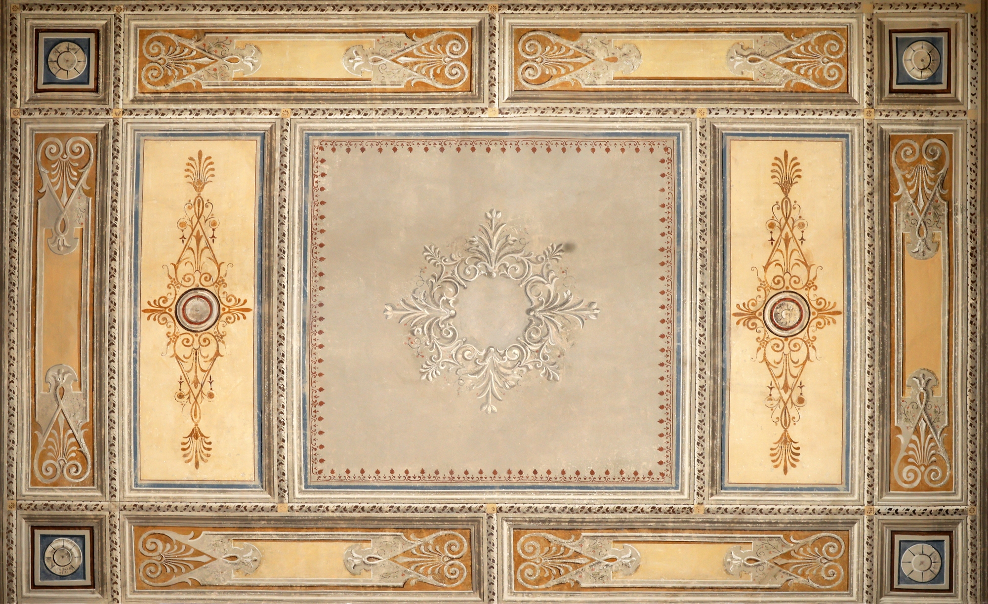 Το κτίριο του αρχικού πυρήνα του 19ου αιώνα φέρει θαυμάσιες οροφογραφίες. Τις αποκάλυψε η συντηρήτρια έργων τέχνης και αρχαιοτήτων Κλεοπάτρα Τσουράκη με το συνεργείο της. Με την πάροδο του χρόνου και με την αλλαγή των αισθητικών προτεραιοτήτων, επικράτησαν οι γύψινες διακοσμήσεις και μεταπολεμικά, τα ζωγραφιστά ταβάνια καλύφθηκαν πλήρως. Ο συνδυασμός του 19ου αιώνα και του Μεσοπολέμου καθιστούν το κτίριο αυτό ιδιαιτέρως γοητευτικό και ενδεικτικό της υψηλής κοινωνικής στάθμης στην περιοχή του Μουσείου.