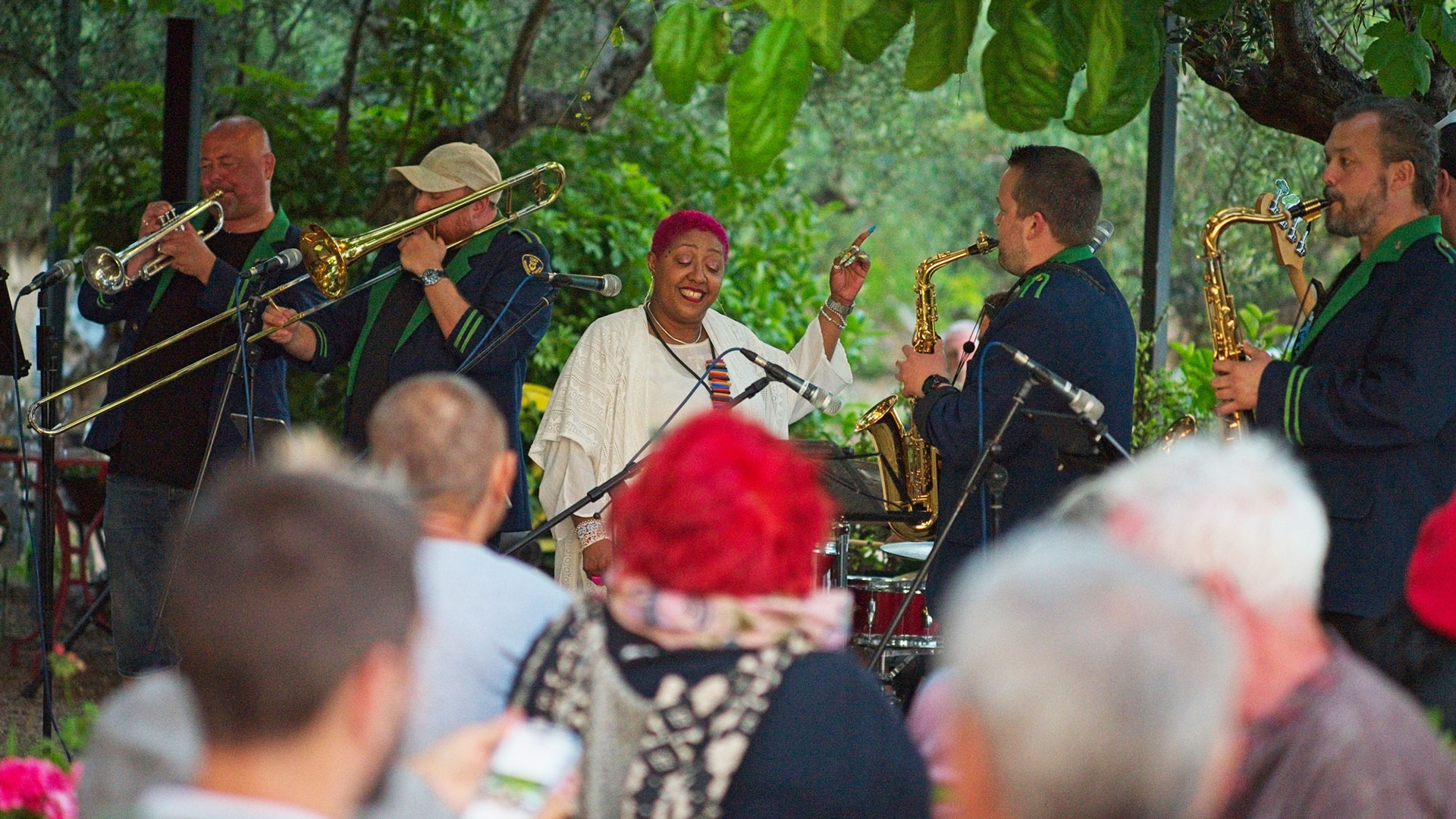 Νωρίτερα, το κολύμπι μας στην παραλία Ριτσά διέκοψε το τραγούδι «Whatever Lola Wants», που θυμίζει ταινία, από τη Ναταλί Αντέλμα και το μουσικό νορβηγικό σχήμα Klakegg/Askeland/Rud Trio. Η φωνή της μας οδήγησε σε μία από τις πολλές αυλές που υπήρχαν κατά μήκος του δρόμου, γεμάτη ελαιόδεντρα και λουλούδια, ακριβώς δίπλα στην παραλία. Η μεγάλη στιγμή, όμως, έφτασε όταν η Τρίσια Μπουτ, μία από τις χαρισματικές φωνές της τζαζ, με καταγωγή από τη Νέα Ορλεάνη, τη γενέτειρα του είδους, ανέβηκε στη σκηνή μαζί με την μπάντα από τη Νορβηγία Feast for fools. Παρουσίασε κλασικά κομμάτια, αλλά και μία σειρά αγαπημένων τραγουδιών από τη δισκογραφία της, με τη βαθιά αισθαντική της ερμηνεία να προσελκύει όλο και περισσότερο κόσμο. Τσούρμο από παρέες ντόπιων και επισκεπτών κατέβαιναν από το ιστορικό Κάστρο των Μούρτζινων, που απείχε μόλις λίγα λεπτά από το σημείο της συναυλίας.