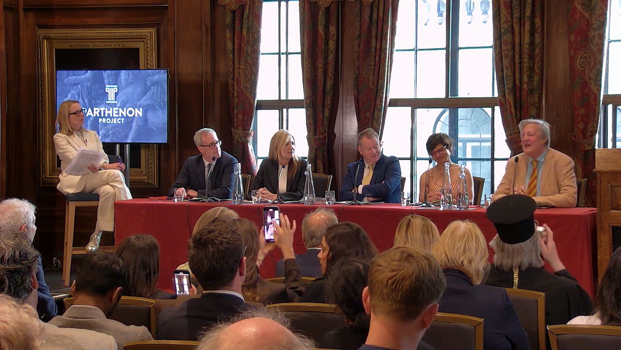 Ανοίγοντας την εκδήλωση, ο πρόεδρος του Parthenon Project, λόρδος Εντ Βέιζι, συνόψισε την αμοιβαία επωφελή λύση («win-win») που προτείνει ο οργανισμός για την επανένωση των Γλυπτών, ενώ η δημοσιογράφος του BBC και συντονίστρια της βραδιάς, Κέιτι Ραζάλ, ξεκίνησε τη συζήτηση ζητώντας από τα μέλη του πάνελ να περιγράψουν το μουσείο του μέλλοντος. Μιλώντας για τα Γλυπτά, η Θάνγκαμ Ντεμπονέρ, πρώην σκιώδης υπουργός Πολιτισμού των Εργατικών και συμπρόεδρος του Parthenon Project, έκανε λόγο για ένα μουσείο «που ενδιαφέρεται για τους ανθρώπους όσο ενδιαφέρεται για τα αντικείμενα», ενώ ο λόρδος Πάρκινσον τόνισε ότι τα μουσεία θα πρέπει να δανείζουν τα αντικείμενά τους στο πλαίσιο του νόμου. Αναφερόμενος σε πιθανή συμφωνία για τα Γλυπτά, ο λόρδος Πάρκινσον τόνισε ότι δεν πρέπει να γίνουν «πασαλείμματα», ώστε να μη χρειαστεί μετά από δεκαετίες να συζητιέται εκ νέου το ζήτημα.