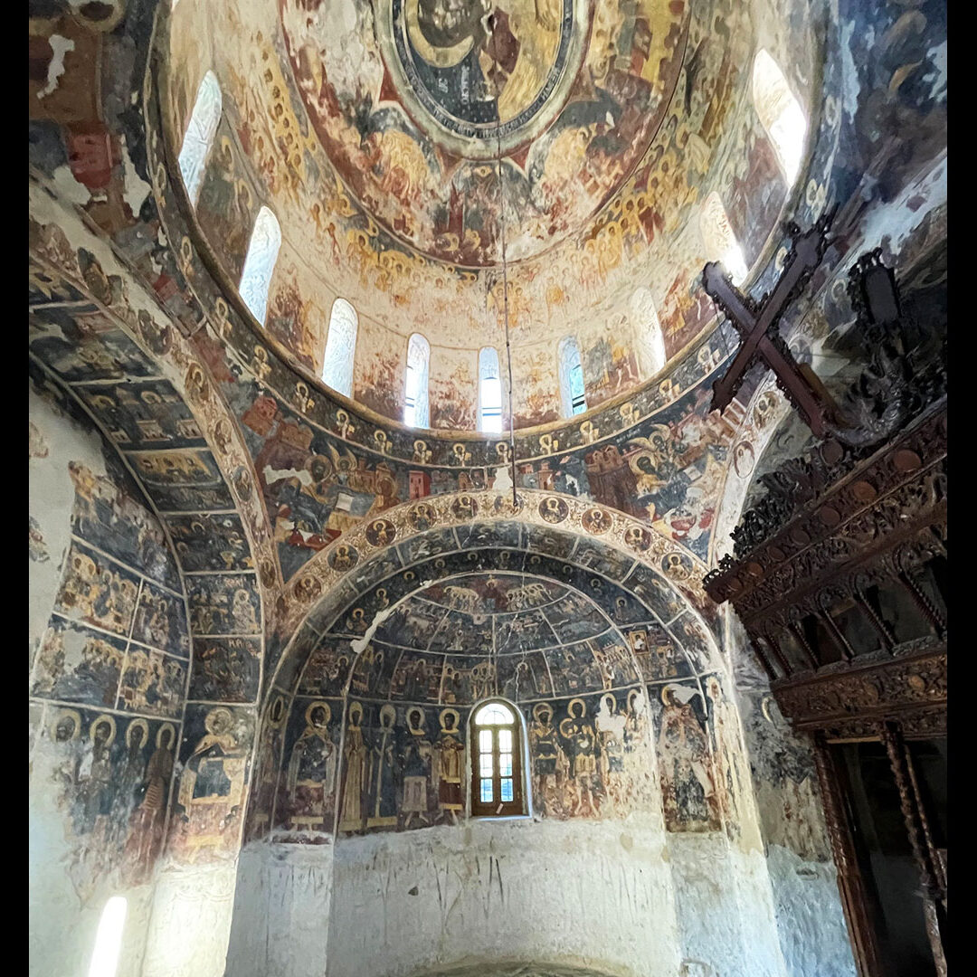 Λιγότερο προβεβλημένη σε εθνικό επίπεδο, η Ιερά Μονή Παναγίας Κεχριάς, συνδέεται με την ημέρα μνήμης της διάσωσης της Σκιάθου από τη γερμανική Κατοχή. Βρίσκεται στην ίδια –βόρεια– πλευρά του νησιού και ξεχωρίζει για τη σεπτή και ελκυστική αρχιτεκτονική μορφή της, με τη στέγη από σχιστόπλακες και τον κυλινδρικό τρούλο, που κοσμείται από εφυαλωμένα πινάκια τύπου Ιζνίκ (16ου ή 17ου αι.) όπως και ο δυτικός τοίχος. Αλλά είναι το εσωτερικό της Μονής που εντείνει το αίσθημα δέους καθώς είναι κατάγραφο με τοιχογραφίες από τα μέσα του 18ου αιώνα. Ενας ολόκληρος κόσμος σιωπηρός και ρωμαλέος αποκαλύπτεται στα μάτια του επισκέπτη και ταυτόχρονα υπενθυμίζει τη μακρά ιστορική διαδρομή της Σκιάθου και τα σημαντικά εκκλησιαστικά μνημεία της.