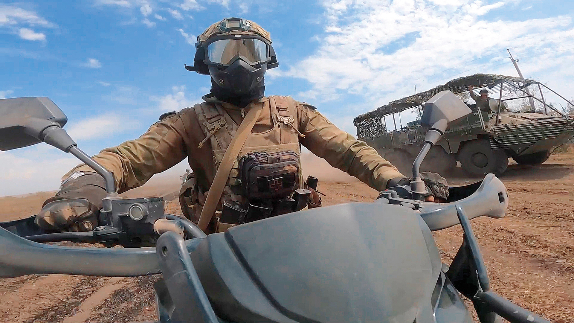 Το βίντεο που παραχώρησε η 28η ταξιαρχία της Ουκρανίας στους βρετανικούς Times δημιουργεί την αίσθηση μιας απόκοσμης ατμόσφαιρας, που θυμίζει τα δυστοπικά περιβάλλοντα των ταινιών «Mad Max». Συνοδεύει το άρθρο της 29ης Ιουνίου 2025 με τίτλο «Putin’s “suicide bikers” speed into no man’s land to cause chaos», το οποίο υπογράφει ο Αλεξ Στετζένσκι και περιγράφει πώς Ρώσοι στρατιώτες ορμούν στην ουδέτερη ζώνη «πετώντας πάνω από τη στέπα» με ταχύτητα 80 χλμ./ώρα πάνω σε φθηνές κινεζικές μοτοσικλέτες. Στόχος τους είναι να παραβιάσουν την ουκρανική άμυνα και να προκαλέσουν χάος πίσω από τις εχθρικές γραμμές. Οι αποστολές με μοτοσικλέτες είναι μια τακτική που κερδίζει έδαφος –το ιππικό με τα «σιδερένια άλογα», τις αποκαλεί ο ρωσικός στρατός– με τους στρατιώτες να προσπαθούν να προκαλέσουν όσο το δυνατόν μεγαλύτερη καταστροφή πριν σκοτωθούν ή αιχμαλωτιστούν. Αλλά λίγοι θα τα καταφέρουν. Οι περισσότεροι σκοτώνονται από drones ή πυρά πυροβολικού. Μερικοί αυτοκτονούν. Η προσδοκώμενη διάρκεια ζωής όσων επιβιώνουν από το ταξίδι δεν είναι πολύ καλύτερη, καθώς είναι εγκλωβισμένοι και περικυκλωμένοι από τους αμυνόμενους Ουκρανούς.