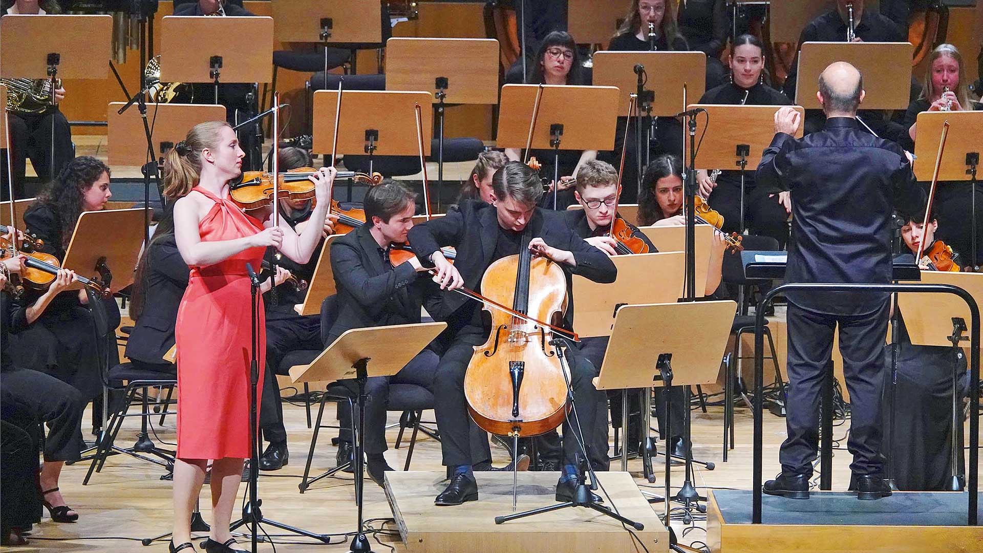 Ακολούθησε ένα έργο του Καμίγ Σεν-Σανς που, όπως και πολλά άλλα, έμεινε γνωστό με τον τίτλο που του έδωσε ο εκδότης του για εμπορικούς λόγους: «Η μούσα και ο ποιητής». Αρχικά ο συνθέτης είχε φανταστεί ένα «Τρίο» για βιολί, τσέλο και πιάνο. Ομως σύντομα ανέπτυξε το μέρος του πιάνου για συμφωνική ορχήστρα και στη μορφή αυτή το έργο πρωτοπαρουσιάστηκε στο Λονδίνο το 1910. Χωρίζεται σε τρία μέρη και διαθέτει «αυτοσχεδιαστική» διάσταση. Ηταν η απάντησή του στην επιμονή των Γερμανών συνθετών στην αυστηρότητα, που ο Σεν-Σανς θεωρούσε ότι κατέστρεφε την ψυχή της μουσικής. Στην Αθήνα σολίστ ήταν δύο πολύ καλοί μουσικοί, η βιολονίστρια Σαρλότε Σόζα και ο τσελίστας Ματέο Σεστάνι. Με τονική ακρίβεια, σιγουριά αλλά και συναίσθημα, οι δυο τους αφέθηκαν στον διάλογο που προβλέπει ο Γάλλος συνθέτης και ανέδειξαν τη γοητεία της μουσικής.