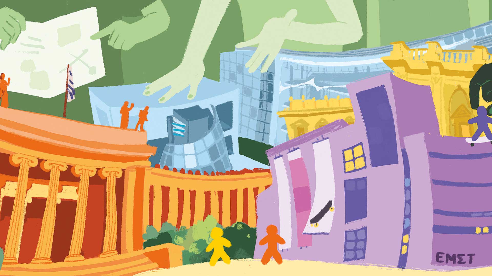 «Η τέχνη πρέπει να ζει, όχι να ταριχεύεται. Καταστρέψτε το ντεκόρ, τη σοβαρότητα, τους ναούς της τέχνης. Δεν υπάρχει τίποτα πιο ευχάριστο από το να μπερδεύεις και να αναστατώνεις τους ανθρώπους. Νταντά σημαίνει άρνηση των θεσμών». Κάπως έτσι μιλούσαν οι ντανταϊστές. Εχει νόημα να τους θυμόμαστε σήμερα, να μην ξεχνάμε ότι η δημιουργία ανήκει στη ζωή που κινείται και αναστατώνει. Αν αναλάμβανα το ΕΜΣΤ, λοιπόν, θα το έκανα skatepark. Οι σανίδες θα ακούγονταν δίπλα στα έργα και, στον τελευταίο του όροφο, θα έβαζα κερκίδες για να κοιτάμε την Αθήνα σαν να είναι ένα θορυβώδες κολάζ. Οι διαδρομές και οι ράμπες του skatepark θα κατέληγαν στον δρόμο, στη Συγγρού, ανακατεύοντας την τέχνη με την κίνηση, τον ιδρώτα, τα φανάρια. Γιατί η τέχνη δεν είναι σιωπή, είναι μια απότομη στροφή· χτυπάει, γελάει, πέφτει. Και ένα μουσείο που δεν σε ξαφνιάζει είναι, απλώς, ένα κλειστό δωμάτιο.