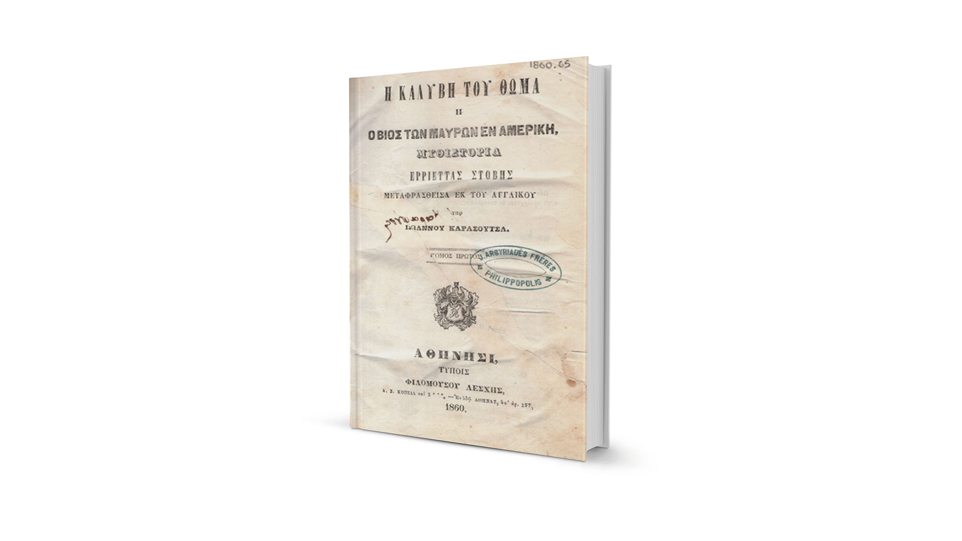Καλή και αγαπημένη φίλη βρέθηκε στην όχι ασυνήθιστη θέση να πρέπει να αδειάσει το σπίτι των γονιών της, τους οποίους «έχασε» σχετικά πρόσφατα. Με τον χρόνο να πιέζει λόγω διδακτικών και άλλων υποχρεώσεών της στο εξωτερικό, μου άφησε δύο χαρτοκιβώτια με βιβλία, από την οικογενειακή βιβλιοθήκη, λέγοντάς μου να δω ποια από αυτά είχαν κάποια αξία. Μαζί με άλλους «θησαυρούς», υπήρχε ανάμεσά τους και ένας στον οποίο «έπεσα με τα μούτρα», όπως λέμε: Ερριέττας Στόβης, «Η καλύβη του Θωμά», με (αυθαίρετον εν μέρει) πλάγιον τίτλο «Ο βίος των μαύρων εν Αμερική», σε μετάφραση («μετηνήχθη υπ’ εμού») του γνωστού λογίου και ποιητή Ιωάννη Καρασούτσα, έκδοση Φιλομούσου Λέσχης, Αθήνησι 1860. Φυσικά, πρόκειται για το γνωστό μυθιστόρημα της Harriet Beecher Stowe «Uncle Tom’s Cabin. Life among the lowly». Το βιβλίο της Χάριετ Μπίτσερ Στόου κυκλοφόρησε στις Ηνωμένες Πολιτείες το 1851, είχε εκπληκτική εμπορική επιτυχία (300.000 αντίτυπα τον πρώτο χρόνο) και μεταφράστηκε πολύ σύντομα στις πιο γνωστές γλώσσες του κόσμου (στα ελληνικά ήδη από το 1855). Ωθησε, μάλιστα, αργότερα τον πρόεδρο Λίνκολν να πει κάτι σαν «αυτό το βιβλίο συνέβαλε ίσως όσο τίποτε άλλο στο να κερδίσουμε τον πόλεμο», εννοώντας βέβαια τον Αποσχιστικό Πόλεμο (Secession War) του 1861-65, τον κοινώς λεγόμενο Πόλεμο Βορείων και Νοτίων, όταν οι πολιτείες του Νότου επιχείρησαν να αποκτήσουν δική τους κρατική υπόσταση στην οποία θα εξακολουθούσε να ισχύει ο θεσμός της δουλείας.