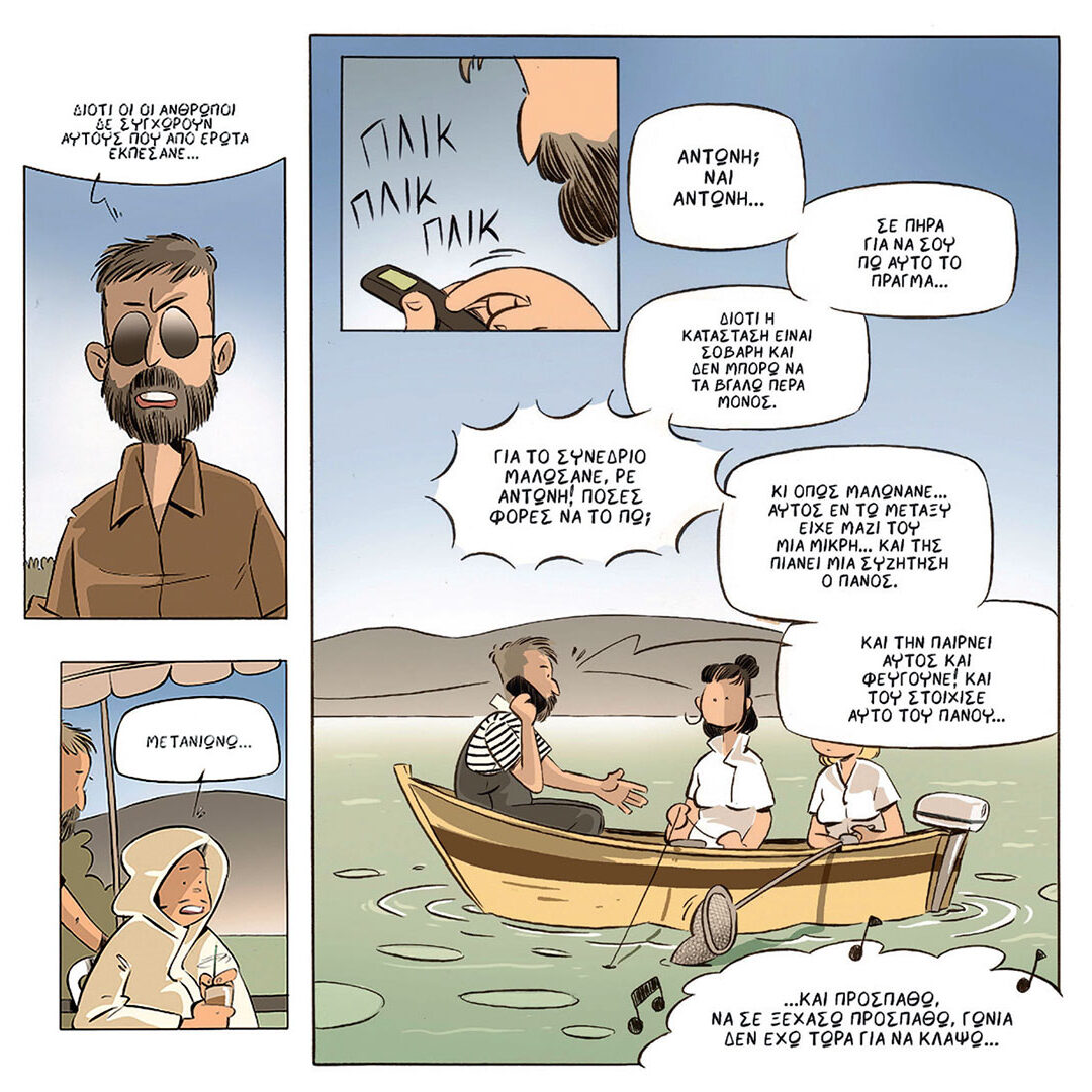 Κυκλοφόρησε από τις εκδόσεις «Chaniartoon Press», του Διεθνούς Φεστιβάλ Κόμικς Χανίων και παρουσιάστηκε στην πρόσφατη διοργάνωσή του, τον Σεπτέμβριο. Εκτός από τον Μάριο Ιωαννίδη, την προσαρμογή του σεναρίου του κόμικ υπογράφουν η Κατερίνα Νανούρη και ο Σταύρος Κιουτσιούκης, ο οποίος ανέλαβε και τα σχέδια, προτού τα χρωματίσει ο Κλήμης Κεραμιτσόπουλος. Ο Κιουτσιούκης αξιοποίησε και εκείνος τους μεγάλους διαλόγους των χαρακτήρων της ταινίας. «Η ταινία μου έδινε χώρο να εικονοποιήσω τις περιγραφές τους», μας λέει, «και εκτός από τη σκηνή με τον “ορισμό του πέναλτι”, σχεδίασα και τις εικόνες του κρεοπώλη στην Παπαδίτσα (σ.σ.: ο οποίος αποκαλύπτει το μυστικό για ένα καλό κοκορέτσι) και της κυρίας Τζόαν Πάππος (σ.σ.: που κάποτε αγόρασε από τον Πάνο και τον έτερο μπατζανάκη του, τον Μιχάλη –στην ταινία τον υποδύεται ο Αργύρης Μπακιρτζής– μια μεγάλη παρτίδα κηροπήγια)». Ολα αυτά, εξηγεί ο Κιουτσιούκης, στην ταινία απλώς λέγονται και καθένας μπορεί να τα έχει φανταστεί με τον δικό του τρόπο. «Είναι δύσκολο», συμπληρώνει, «να δώσεις στον κόσμο μια άλλη οπτική μιας ιστορίας που την έχει δει ήδη σαν εικόνα. Είχε λοιπόν μεγάλη ευθύνη και κάποιο ρίσκο».