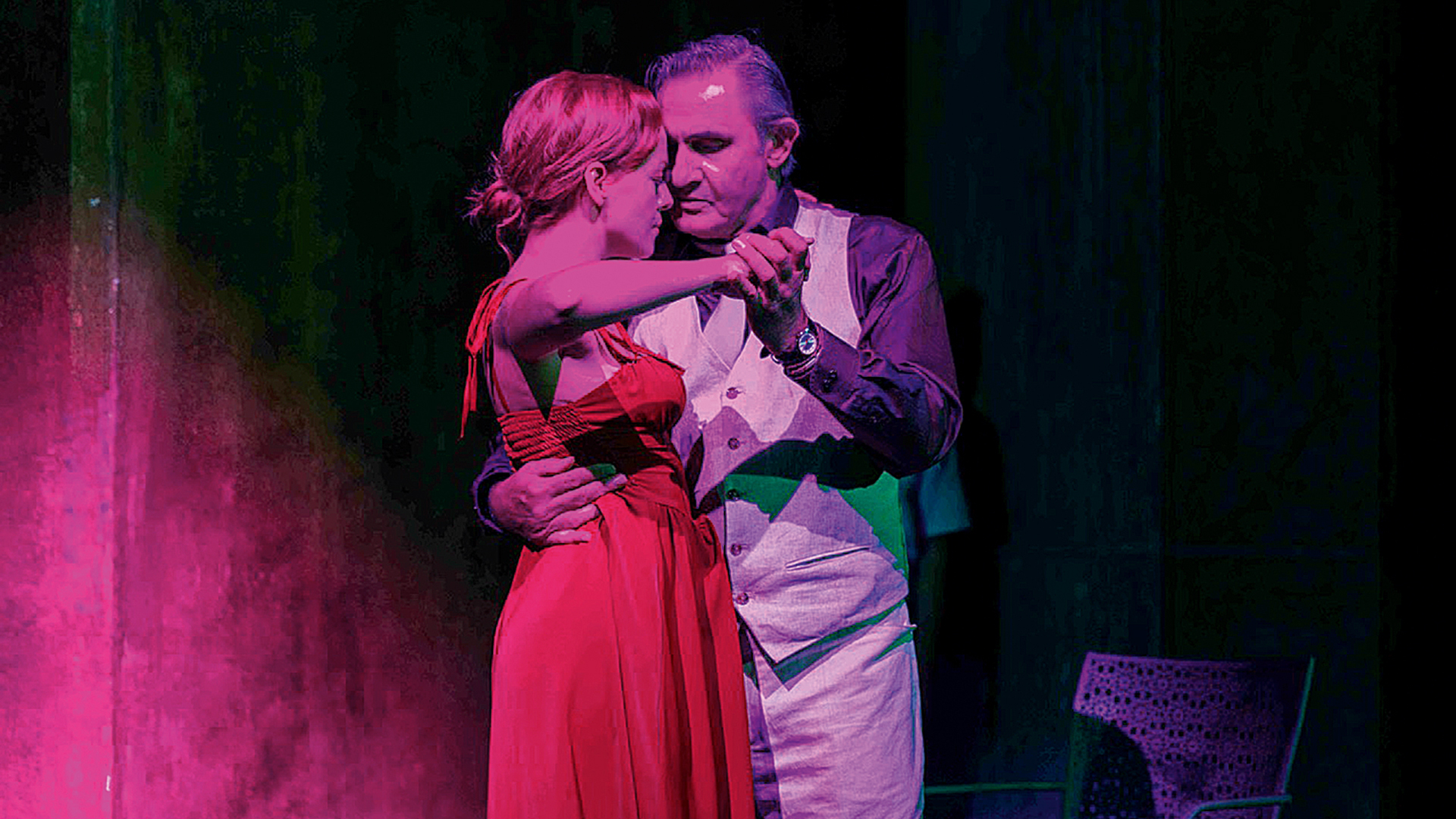 Βέβαια, ο θεατής που εισέρχεται στο «Βρετάνια» έχει στο μυαλό του έναν ανυπέρβλητο κινηματογραφικό μύθο, το ταγκό του Αλ Πατσίνο και της γοητευτικής Γκαμπριέλ Ανουάρ στη σκηνή του χορού «Por una Cabeza» που συνέθεσε ο Αργεντίνος Κάρλος Γκαρντέλ για το οσκαρικό «Αρωμα Γυναίκας» (1992). Ο Κωνσταντίνος Ασπιώτης αναμετρήθηκε επιτυχώς με τη δυναμική προϊστορία του έργου και μετατοπίζοντας το βάρος στη θεατρικότητα των καταστάσεων, εστίασε σε τρεις βασικές συνιστώσες: στο προσωπικό δράμα της μοναξιάς του Φάουστο, στη γνήσια φιλία του με τον στρατιώτη Τσίτσο και στην ερωτική αγάπη της Σάρας προς τον Φάουστο παρά τη διαφορά ηλικίας είκοσι ετών και το χάσμα εμπειριών μεταξύ τους.