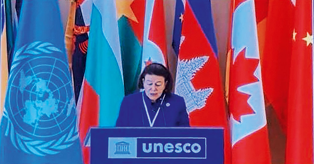 Στη συνέχεια, στη γενική συνέλευση της UNESCO που για πρώτη φορά πραγματοποιήθηκε εκτός της έδρας του Οργανισμού, στη Σαμαρκάνδη του Ουζμπεκιστάν, η υπουργός αναφέρθηκε σε πρωτοβουλίες της Ελλάδας για την προστασία της πολιτιστικής κληρονομιάς.