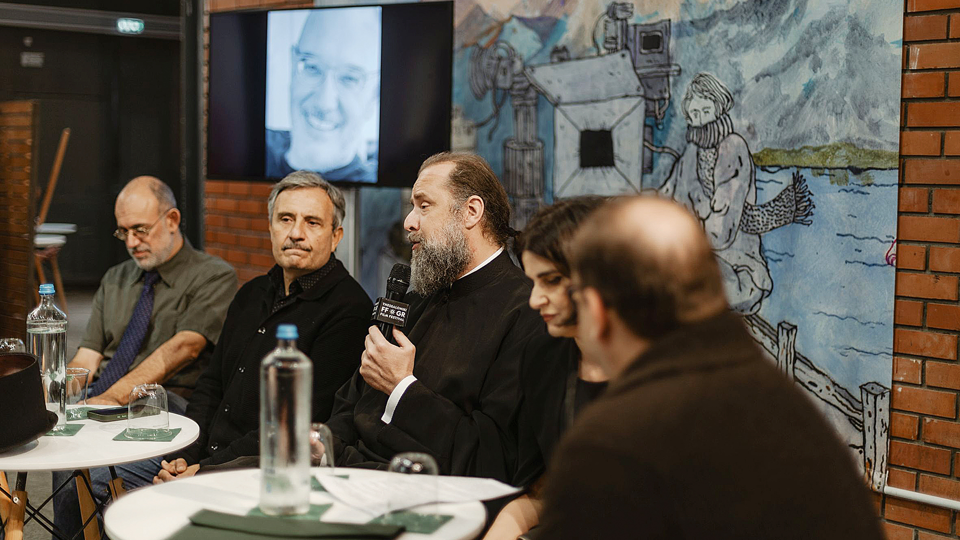 Κατάμεστη η Αποθήκη Γ στην εκδήλωση του Φεστιβάλ Κινηματογράφου Θεσσαλονίκης και του περιοδικού Parallaxi για τον φωτισμένο θεολόγο.