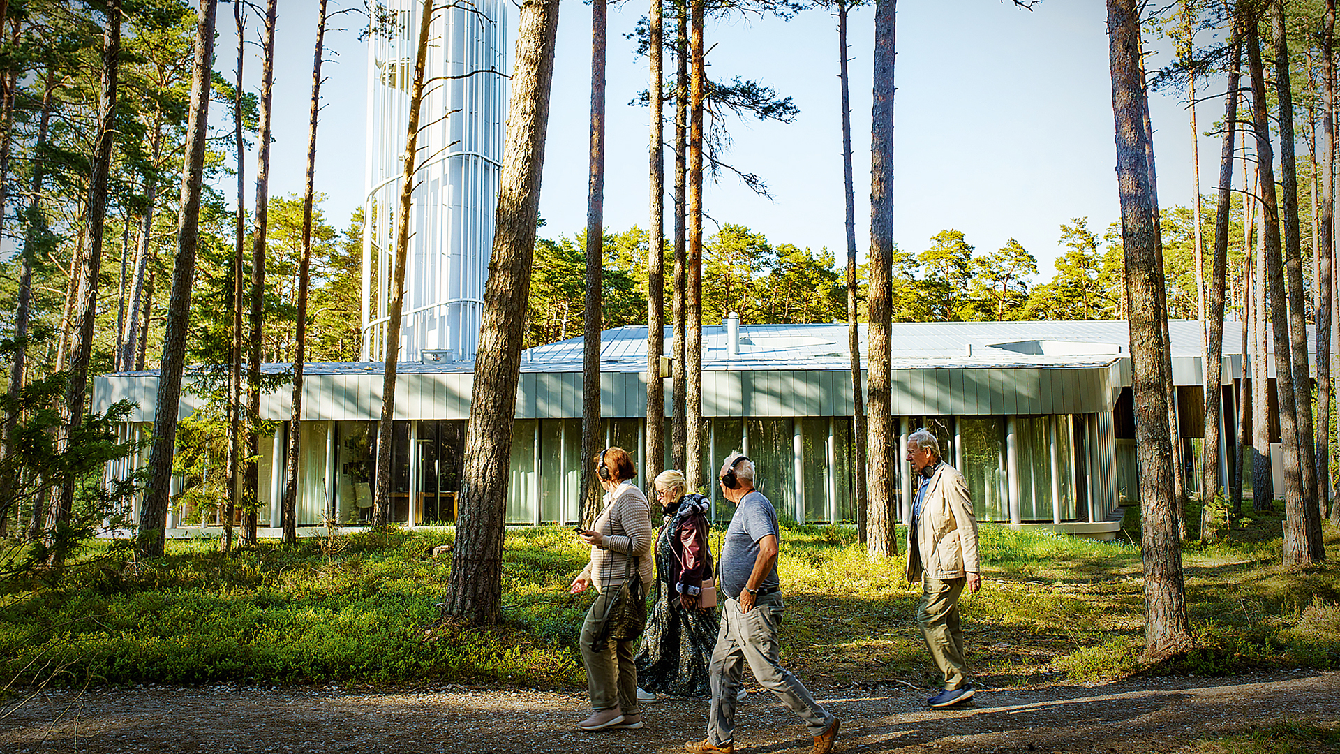 Το κτίσιμο του Κέντρου ολοκληρώθηκε το 2018, οπότε εμείς το επισκεφθήκαμε στον έβδομο χρόνο της λειτουργίας του. Φτάσαμε με ταξί από το κέντρο του Ταλίν. Μας άφησε σε ένα μικρό πάρκινγκ (κάτω από τα δέντρα και αυτό) για να βηματίσουμε λίγα λεπτά μέχρι την κεντρική είσοδο. Δεξιά μας διάσπαρτες μονοκατοικίες, σε απόσταση η μία από την άλλη. Σκέφτηκα ότι ίσως σε κάποιο από αυτά τα σπίτια μπορεί να μένει ο 90χρονος Περτ. Αποσυρμένος από τον κόσμο, δεν γράφει πια μουσική, όπως μας είπε η Νέλε Κιβίσιλντ (Nele Kivisild), που μας υποδέχθηκε και μας ξενάγησε για περίπου δύο ώρες.