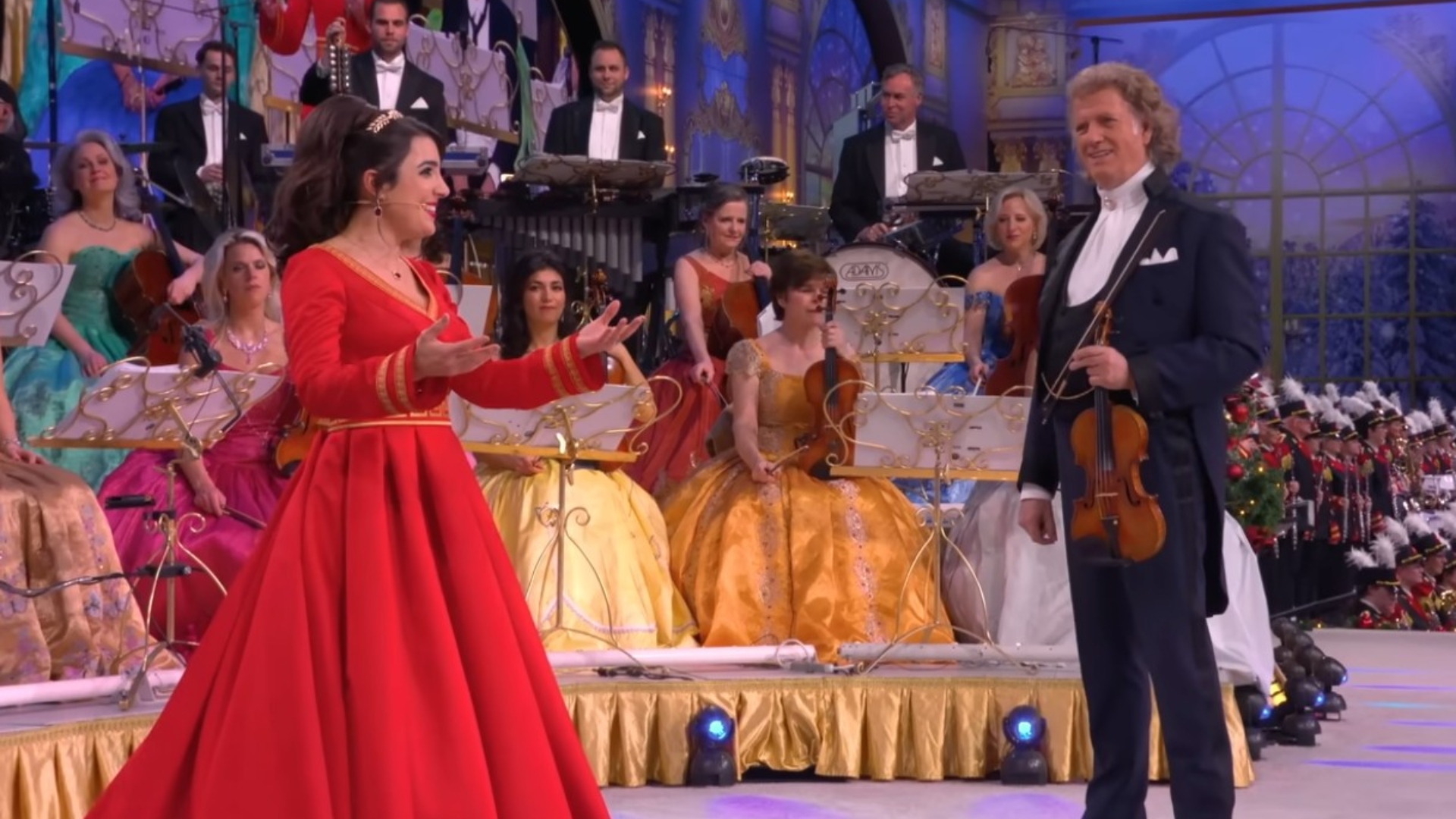 Μάλιστα, ο Αντρέ Ριέ προλόγισε με έναν ιδιαίτερο και χιουμοριστικό τρόπο την Ελληνίδα σοπράνο. «Ολοι ξέρετε το έθιμο με τα παιδιά που πηγαίνουν από πόρτα σε πόρτα και τραγουδούν τα κάλαντα των Χριστουγέννων για να τους δώσουν γλυκίσματα. Στην Αμερική τραγουδούν την ημέρα του Χάλοουιν, στη Γερμανία την ημέρα του Αγίου Μαρτίνου και στην Ελλάδα τα Χριστούγεννα. Ευτυχώς έχω μία Ελληνίδα τραγουδίστρια στη χορωδία μου. Και της αρέσουν τα γλυκά», είπε χαρακτηριστικά, με τους θεατές να γελούν.