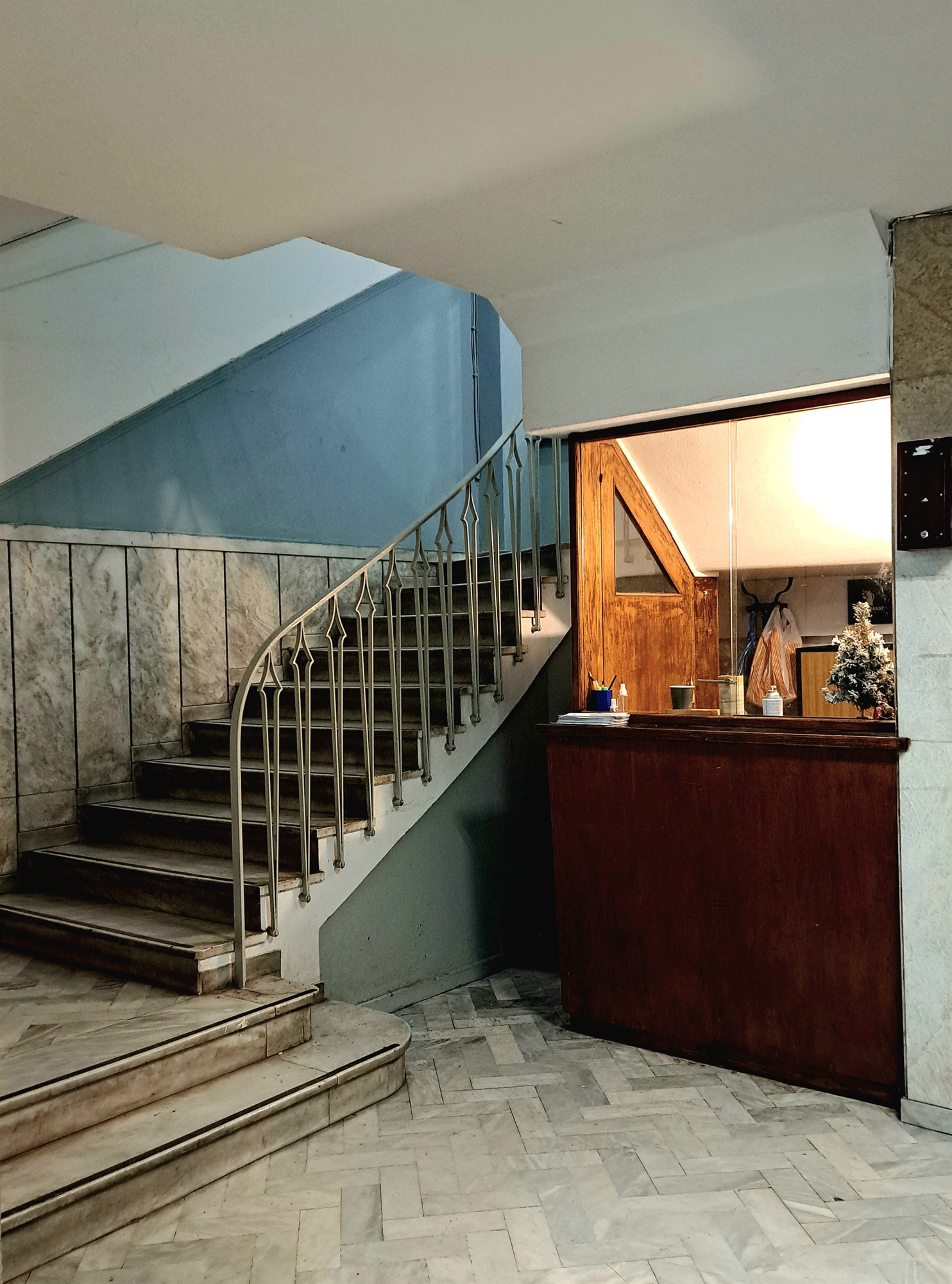 Με δισταγμό έφτασα μέχρι την εσωτερική, εντός στοάς, είσοδο. Με ένα κάποιο δέος και με άλλη τόση περιέργεια, σαν να δρασκέλιζα ένα άβατο ενός χώρου, του οποίου τους κώδικες ελάχιστα γνώριζα. Για ένα τόσο μεγάλο κτίριο ήταν εντυπωσιακά άδεια από ανθρώπους η είσοδος εκείνη τη στιγμή. Ομως, η θέα του ξύλινου θυρωρείου, θερμό από το φως της λάμπας μέσα σ’ αυτήν την κόγχη, σαν φωλιά και παρατηρητήριο, έδινε όλη εκείνη την παράδοξη θαλπωρή του εφήμερου. Ενα μικρό χριστουγεννιάτικο ελατάκι, καθώς αναβόσβηνε μονάχο, έδινε μια κάπως πένθιμα γιορτινή ατμόσφαιρα.