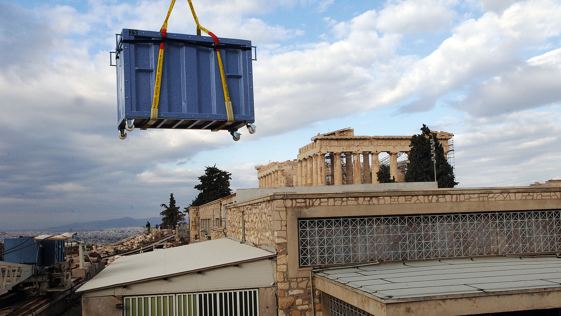 Η μεταφορά των αρχαιοτήτων το 2007 από το παλιό μουσείο στον Ιερό Βράχο, στο κτίριο της Δ. Αρεοπαγίτου, ήταν πρωτοφανές έργο υψηλών τεχνικών απαιτήσεων, άριστου συντονισμού, συνεργασίας, κόστους 1,6 εκατ. ευρώ. Και ίσως συγκινητικότερη και από τα εγκαίνια την επόμενη χρονιά. Καρυάτιδες, κούροι, αρχαϊκές κόρες, γλυπτά και αρχιτεκτονικά μέλη, 410 μεγάλες αρχαιότητες και 4.200 αντικείμενα, συνολικά βάρους 113 τόνων μαρμάρου, αιωρήθηκαν με ελεγχόμενες «πτήσεις» των γερανών από το παλαιό μουσείο του Βράχου στο νέο. Ευτυχώς, αυτό το τεχνικό ποίημα κινηματογραφήθηκε από τον Παντελή Βούλγαρη.
