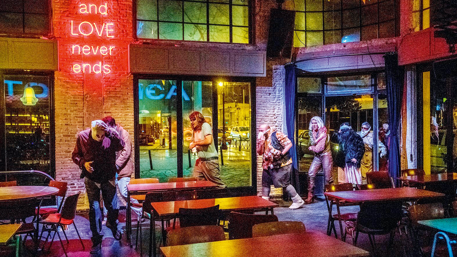Οκτώ χρόνια πριν από την είσοδο του 2000, που θα υποδεχόμασταν με νεοπλουτίστικη ξιπασιά, η κρίση στραγγάλιζε αργά το θέατρο. Οταν πια όλοι αποδέχθηκαν την ύπαρξη της κρίσης, το θέατρο ήδη σχημάτιζε τη δική του ανθρωπογεωγραφία λόγω μείωσης εξόδων. Παραστάσεις σε διαμερίσματα, εγκαταλελειμμένα νεοκλασικά, αυλές, συνεργεία, γκαράζ, στο παλιό βρεφοκομείο Αθηνών, σε ένα πρώην ραφτάδικο στην Αγίου Μάρκου, σε καφενείο, σε γυμναστήριο, ακόμη και σε τουαλέτες. Η θεατρική ομάδα ΑΣΙΠΚΑ διάλεξε τις τουαλέτες του Βios, για να παρουσιάσει το «Τρίπτυχο» του Χάινερ Μίλερ.