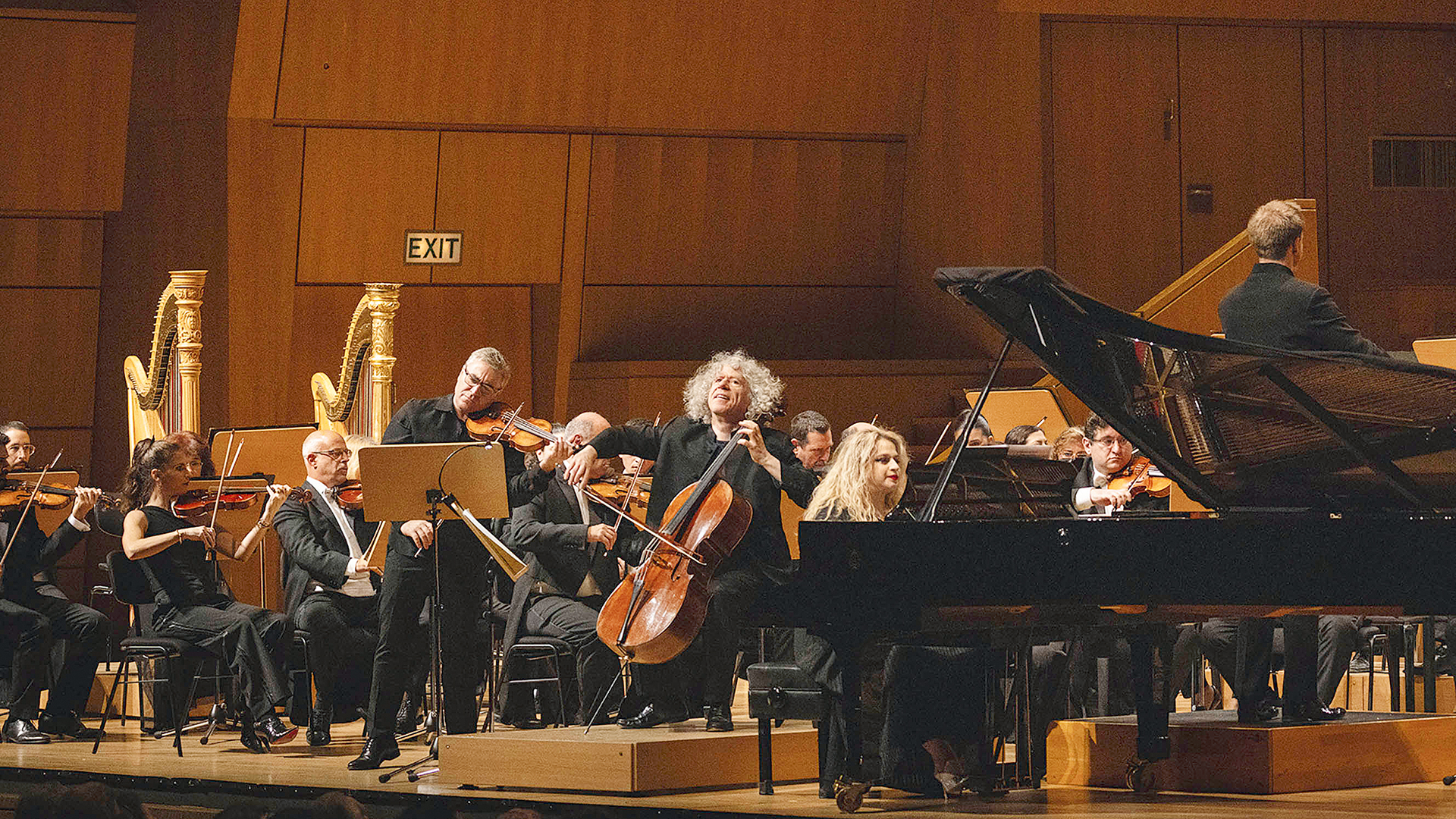 Το πρόγραμμα άρχισε με το «Τριπλό κοντσέρτο» για βιολί, τσέλο, πιάνο και ορχήστρα του Μπετόβεν, για το οποίο μετακλήθηκαν ως σολίστες ο βιολονίστας Μαξίμ Βενγκέροφ, ο τσελίστας Στίβεν Iσερλις και η πιανίστρια Θεοδοσία Ντόκου. Ο μεταξύ τους διάλογος υπήρξε μάλλον άνισος, καθώς ο Iσερλις προτίμησε συνολικά μια περισσότερο λυρική απόδοση της μουσικής και, επιπλέον, έπαιζε σε τσέλο με εντέρινες χορδές, οπότε υπολειπόταν σε ένταση σε σχέση με τα άλλα δύο όργανα.