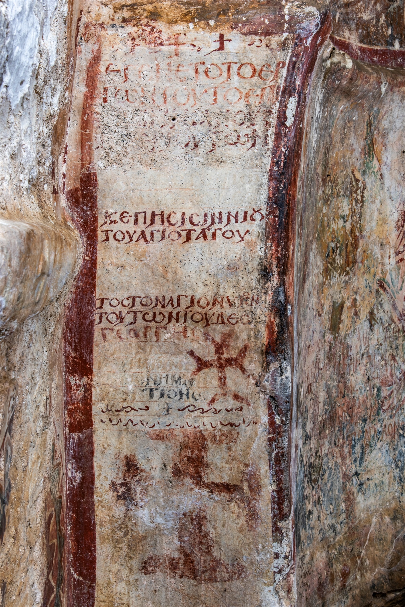 Στο πλαίσιο της μελέτης των βυζαντινών τοιχογραφιών του πρώιμου Μεσαίωνα που πραγματοποιεί στις Κυκλάδες, ο Δημήτρης Αθανασούλης, διευθυντής της Εφορείας Αρχαιοτήτων Κυκλάδων, επέστρεψε πρόσφατα με τους συνεργάτες του στην Παναγιά Δροσιανή. Η κτητορική επιγραφή της, αποτελούμενη από 19 στίχους, εκ των οποίων μόνον οι έξι διακρίνονται σήμερα (οι υπόλοιποι είναι αποξεσμένοι ή απλώς αποχρωματισμένοι), βρίσκεται στο βόρειο μέτωπο της αψίδας του ιερού. Στους στίχους, εξηγεί ο κ. Αθανασούλης, αναγράφεται το όνομα του Σισιννίου του Αγιοτάτου, που θα ήταν κάποιος επίσκοπος, ενώ οι στίχοι που προηγούνται του επισκόπου με την πρόθεση «επί» θα περιείχαν υψηλότερο ιεραρχικά πρόσωπο.