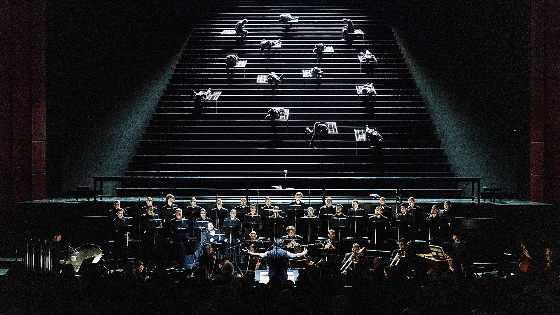 Σήμερα όμως που η ασθένεια δεν θερίζει όπως παλιά και τα πράγματα έχουν αλλάξει για ποια σώματα «αυτός ο χτύπος σημαίνει θάνατο;». Το έργο κρατάει την αφετηρία του αλλά το άγος του Καπετανάκη που προσπαθεί να ετοιμαστεί «για τον ιερό καιρό» και ο πένθιμος τόνος του Κουμεντάκη μπορούν να διαβαστούν και διαφορετικά. Πώς άραγε βρίσκουν τα ρωσικά βλήματα τους Ουκρανούς στρατιώτες; Είναι ντυμένοι με τη στολή τους στο πεδίο της μάχης; Μήπως γυμνοί σε έναν στρατώνα ξαπλωμένοι στο μεταλλικό τους κρεβάτι – σαν αυτά που κρατούσαν στα χέρια οι χορευτές του Ρέκβιεμ; Ή έκαναν έρωτα στα σκοτεινά κλέβοντας λίγες στιγμές ζωής πριν πέσει μια βόμβα δίπλα τους; Είναι διαφορετικοί οι νεκροί του Ιράν, του Ισραήλ και της Γάζας ή της Μινεσότα; Πόσο διαφέρει το άψυχο ανδρικό από το γυναικείο σώμα; Τα σώματα του Ρέκβιεμ θα μπορούσαν να κατρακυλούν σε έναν ομαδικό τάφο. Οχι;
